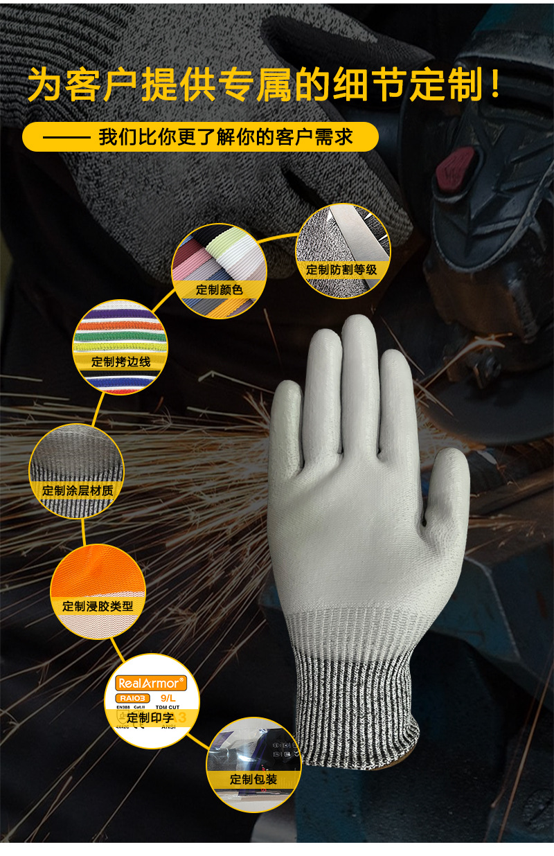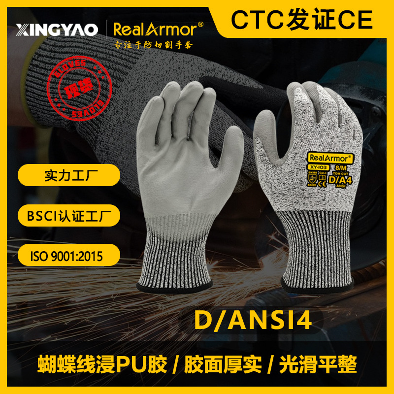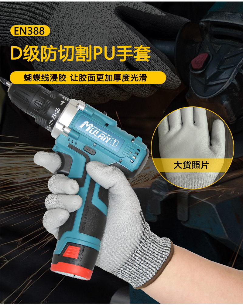 ДомМагазинПерчатки противорежущиеВ наличии перчатки из стекловолокна HPPE класса D с полиуретановым покрытием, стойкие к порезам, сертификат CE EN388 класса A5
