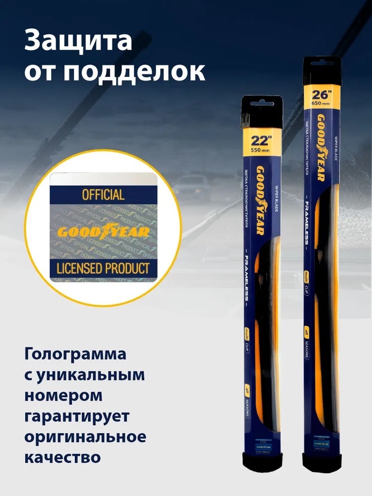Дворники Ford Explorer 5 пок. 2010-2019 (Форд Эксплорер 5, рестайлинг), Щетки стеклоочистителя бескаркасные Goodyear 650 550