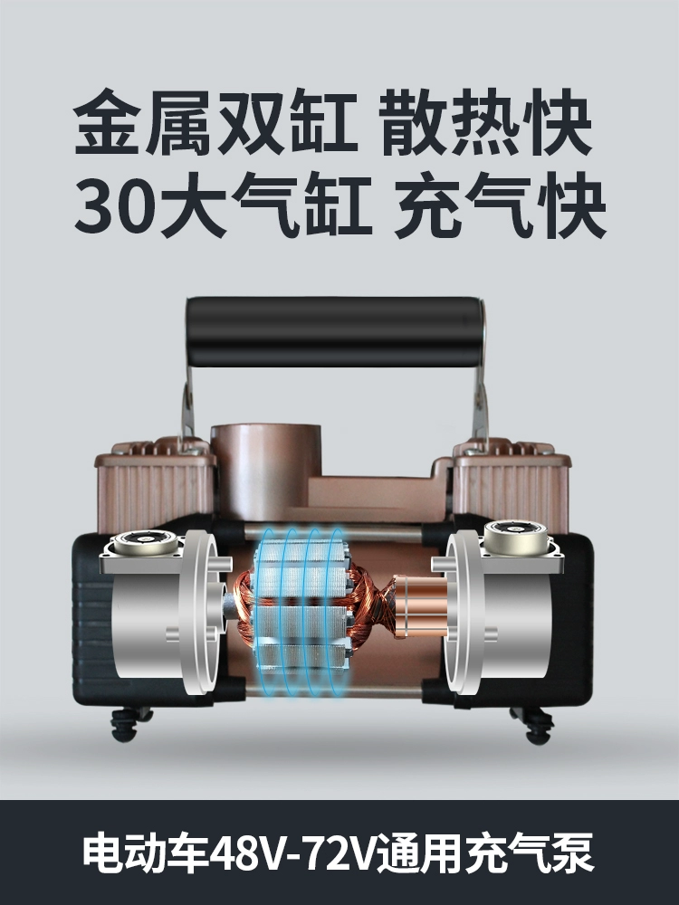 ДомМагазинВоздушный насос, устанавливаемый на транспортное средствоДвухцилиндровый электронасос для шин транспортного средства, универсальный переносной аккумуляторный насос и насос для шин транспортного средства 48-72 В, вакуумный насос для шин 60 В.