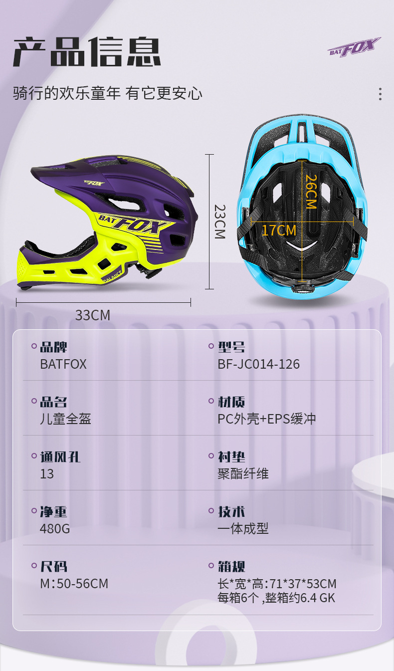 ДомМагазинАвтомоющие средстваДетский шлем BATFOX для балансировки автомобиля, велосипедный шлем, полный шлем для езды на велосипеде, горный велосипед, съемный полный шлем для женщин