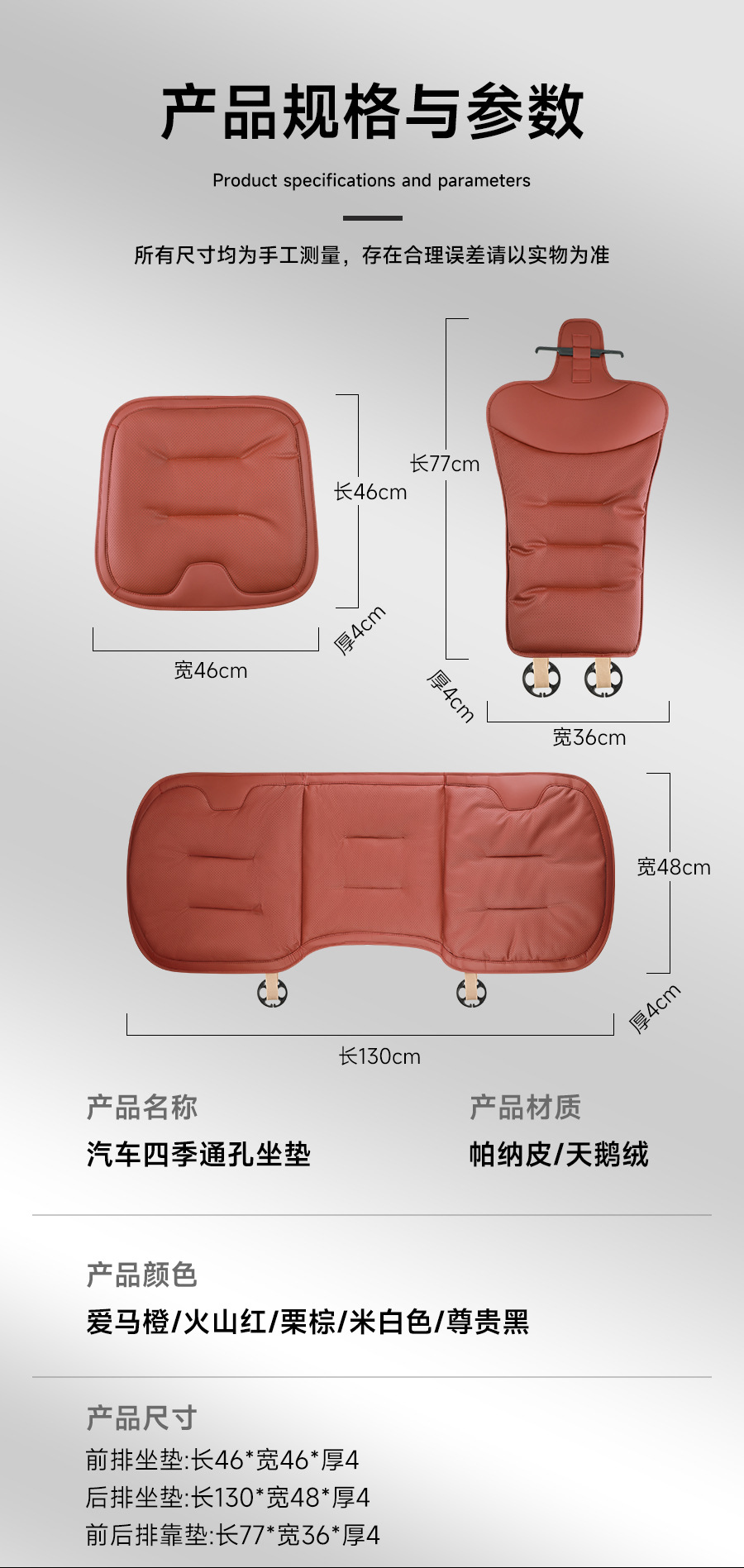 前排坐垫尺寸 : 长46cmX宽46cmX高3cm