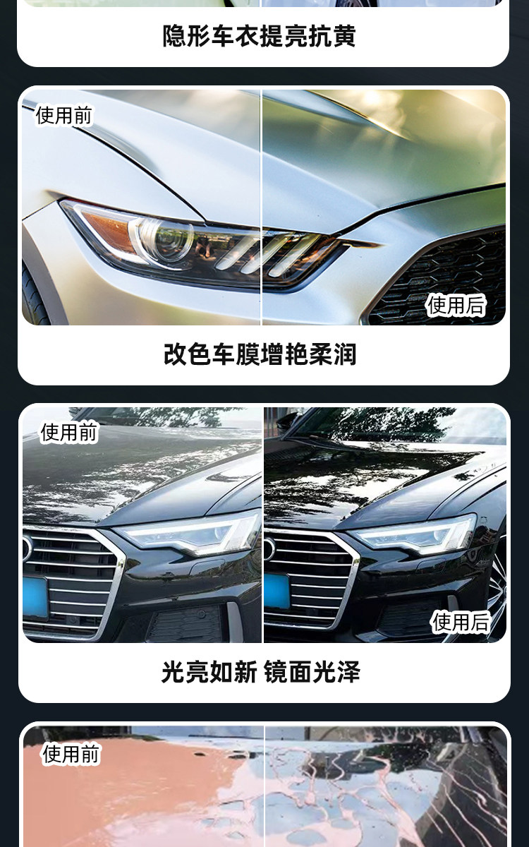 | сортировать по цвету | Средство для ухода за автомобилем [большая емкость 500 мл + бесплатное полотенце], средство для ухода за автомобилем 500 мл + чистящее средство 500 мл [бесплатное полотенце], 2 бутылки средства для ухода за автомобилем [500 мл*2 бутылки + бесплатное полотенце], средство для ухода за чехлами автомобилей [богато средствами, предотвращающими пожелтение] + удаляет масляную пленку [не повреждает стекло] |