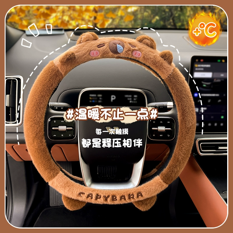 ДомМагазинЧехол на руль автомобиляЗимний плюшевый чехол на руль Kapibala General Motors для женщин, симпатичный, нескользящий, теплый и защитный.