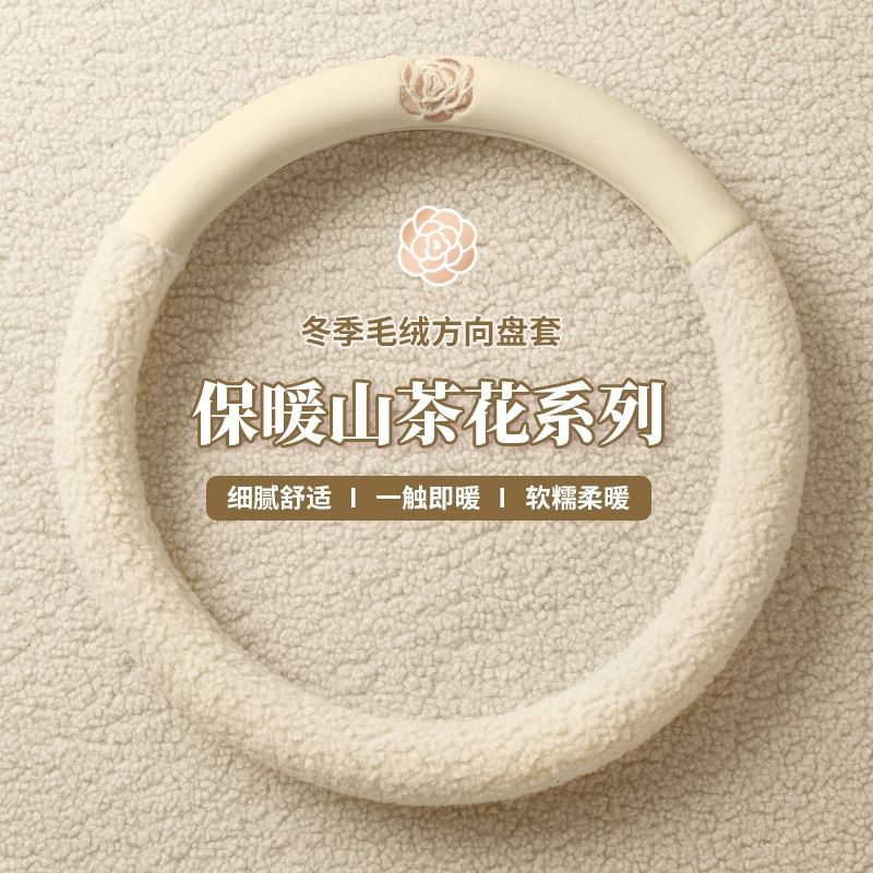 ДомМагазинЧехол на руль автомобиляЗимний чехол на руль автомобиля — плюшевый чехол из шерсти ягненка цвета камелии для женщин — простой, короткий, плюшевый, высококачественный, теплый