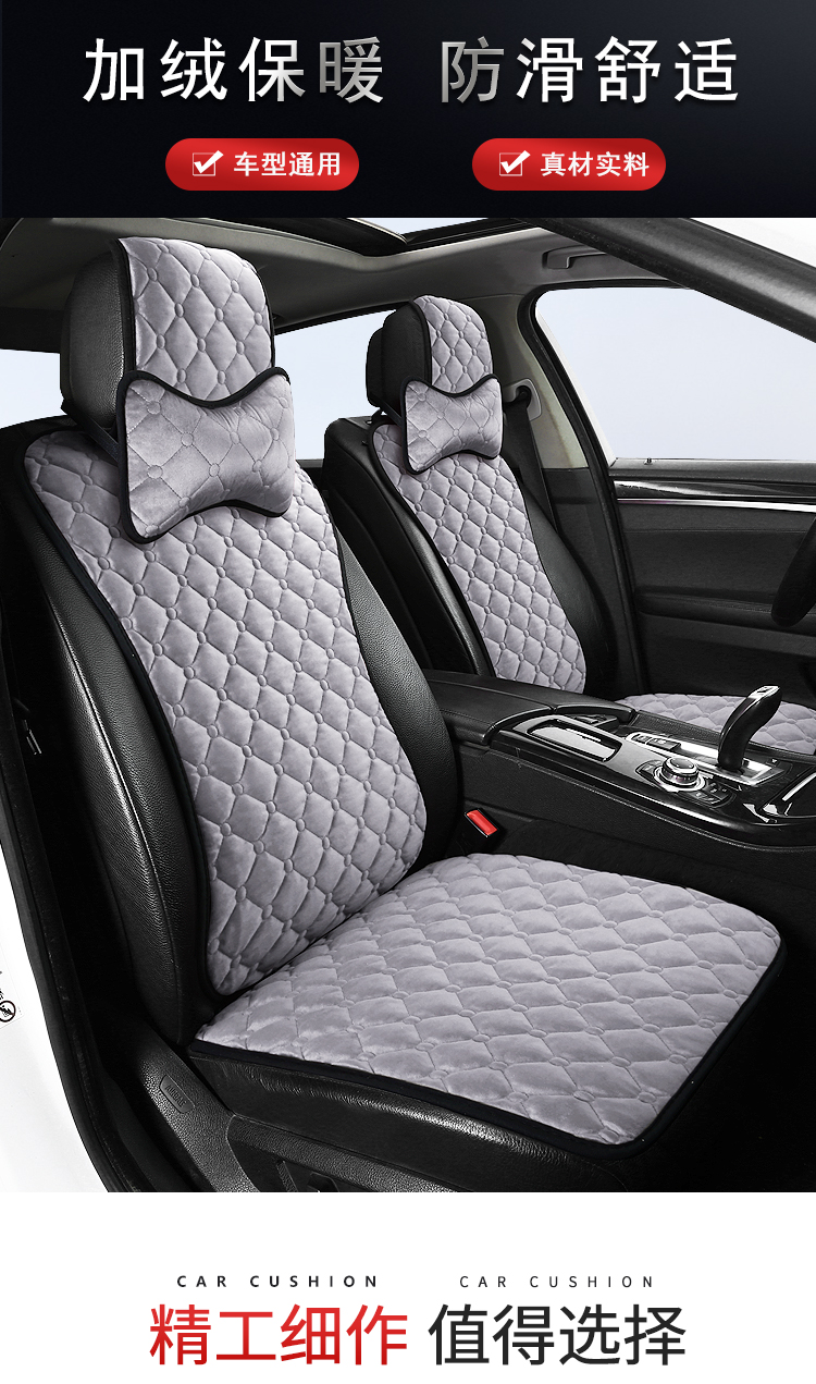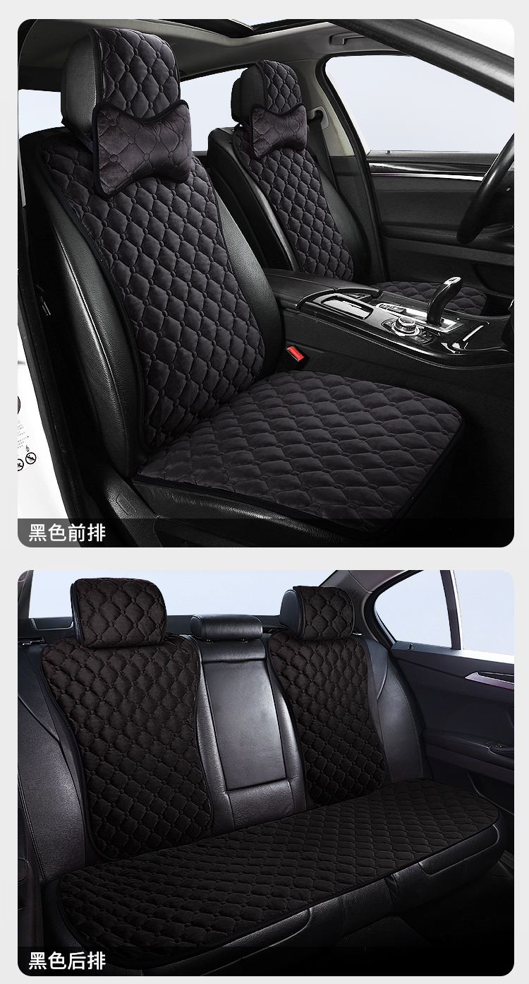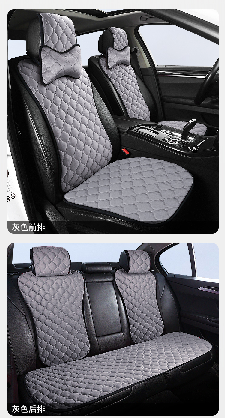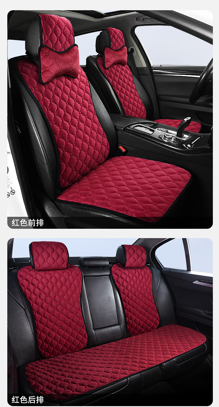 ДомМагазинЧехлы для автомобильных сиденийЗимняя подушка на сиденье автомобиля, короткая плюшевая одинарная хлопковая накладка, подушка на спинку сиденья, теплая квадратная накладка, универсальный автомобильный коврик, комплект для сиденья (три предмета).