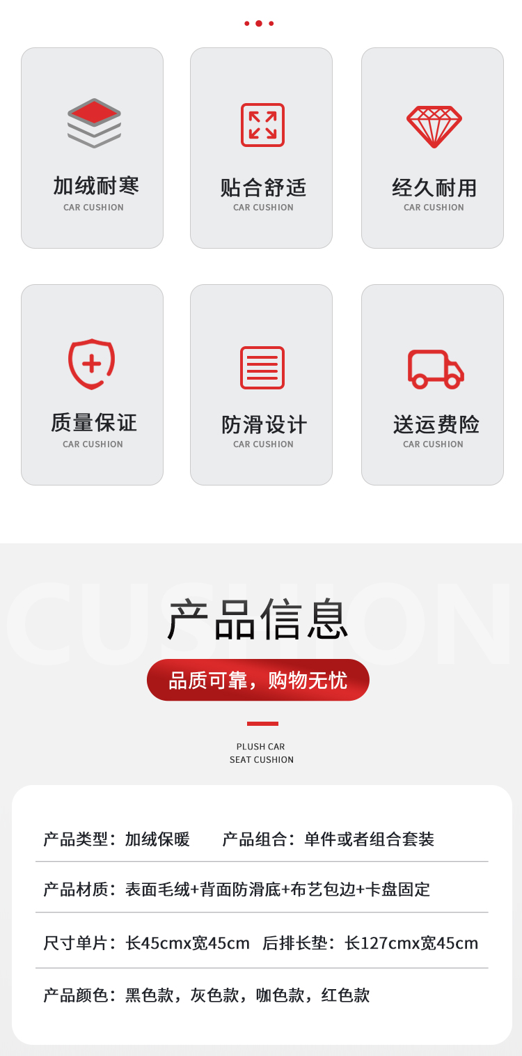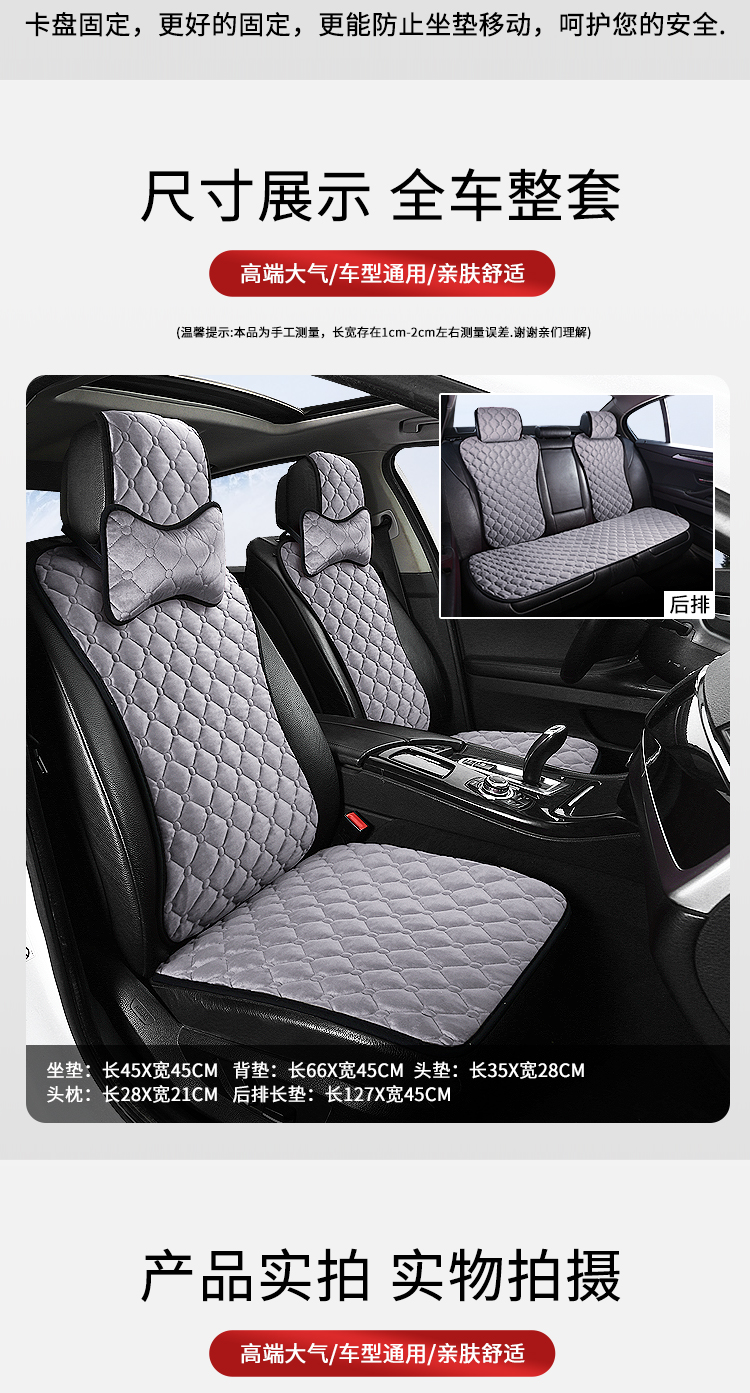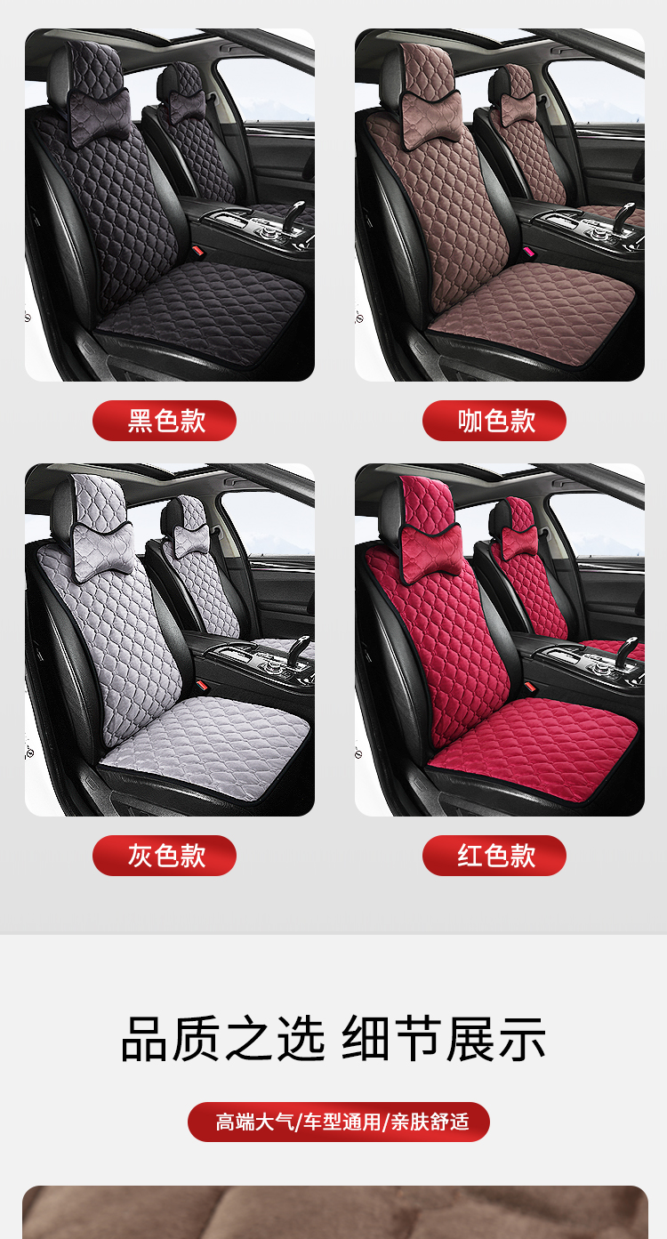 ДомМагазинЧехлы для автомобильных сиденийЗимняя подушка на сиденье автомобиля, короткая плюшевая одинарная хлопковая накладка, подушка на спинку сиденья, теплая квадратная накладка, универсальный автомобильный коврик, комплект для сиденья (три предмета).