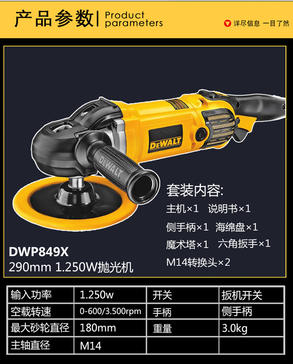 Полировальный станок с регулируемой скоростью 180 мм DWP849X