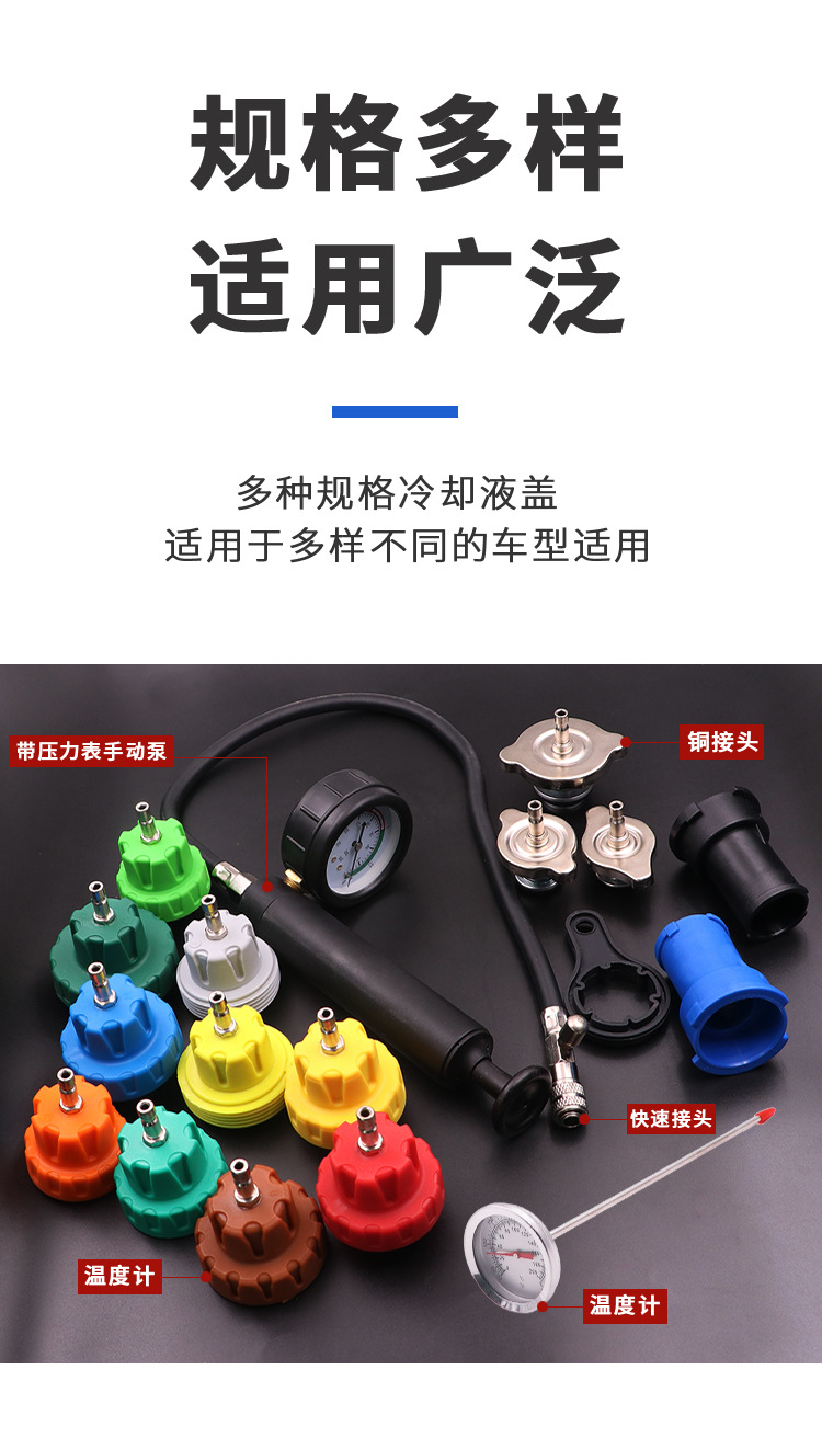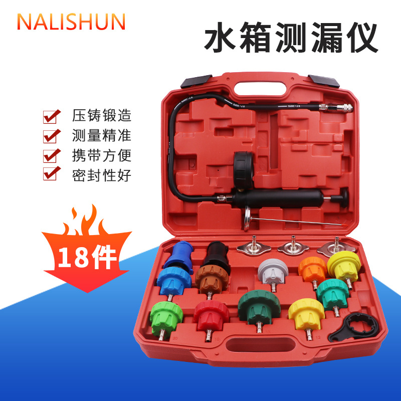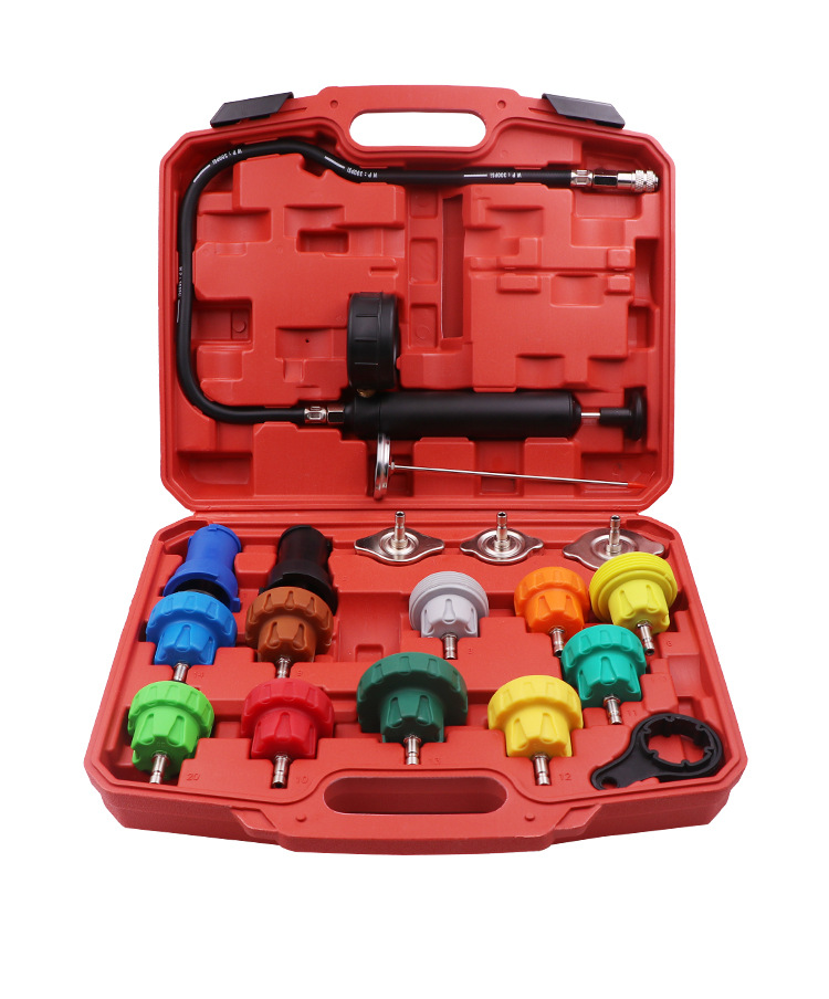 ДомМагазинАвтомобильный антифризИнструмент для обнаружения утечек под давлением в водяном баке автомобиля, 34 предмета, детектор утечек для замены охлаждающей жидкости, вакуумный манометр, детектор утечек