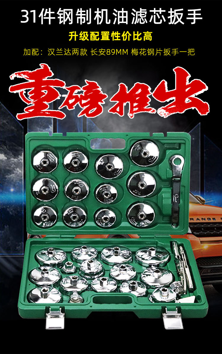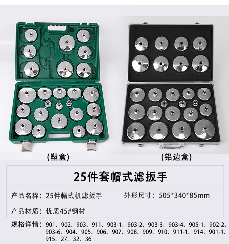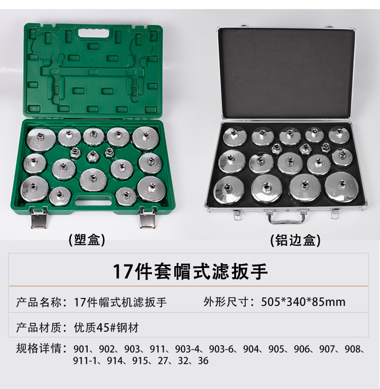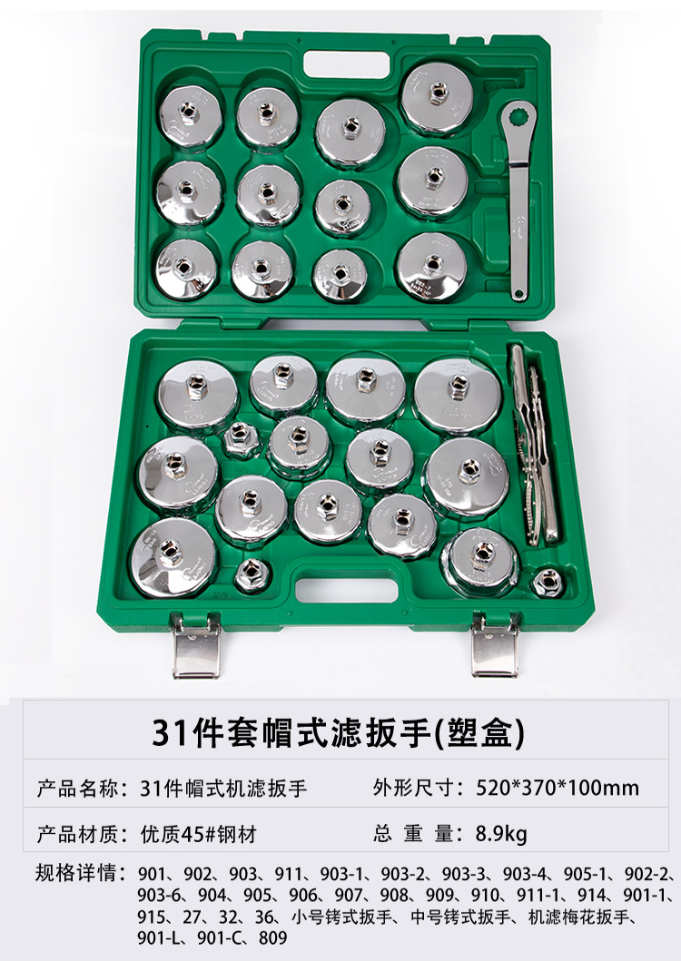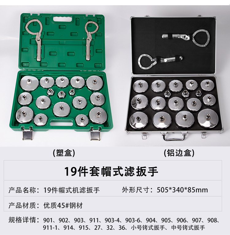| Технические характеристики | Средний ключ для фильтра наручников, Г-образный изогнутый стержень, набор из 25 предметов, набор из 27 предметов, набор из 17 предметов, набор из 19 предметов, пластиковый ящик из 28 предметов (ключ для фильтра из 27 предметов + ключ с храповым механизмом, стальной ключ для масляного фильтра «цветок сливы», 903 (73/74 мм — 14 зубцов), 904 (78/79 мм — 15 зубцов), 31 предмет + ключ с храповым механизмом 1/2, малый ключ для фильтра наручников, 902 (66/67 мм — 14 зубцов), специальный ключ Changan (89MM — 12 граней), ключ с храповым механизмом 1/2, набор из 31 предмета, 901 (64/65 мм — 14 зубцов) |