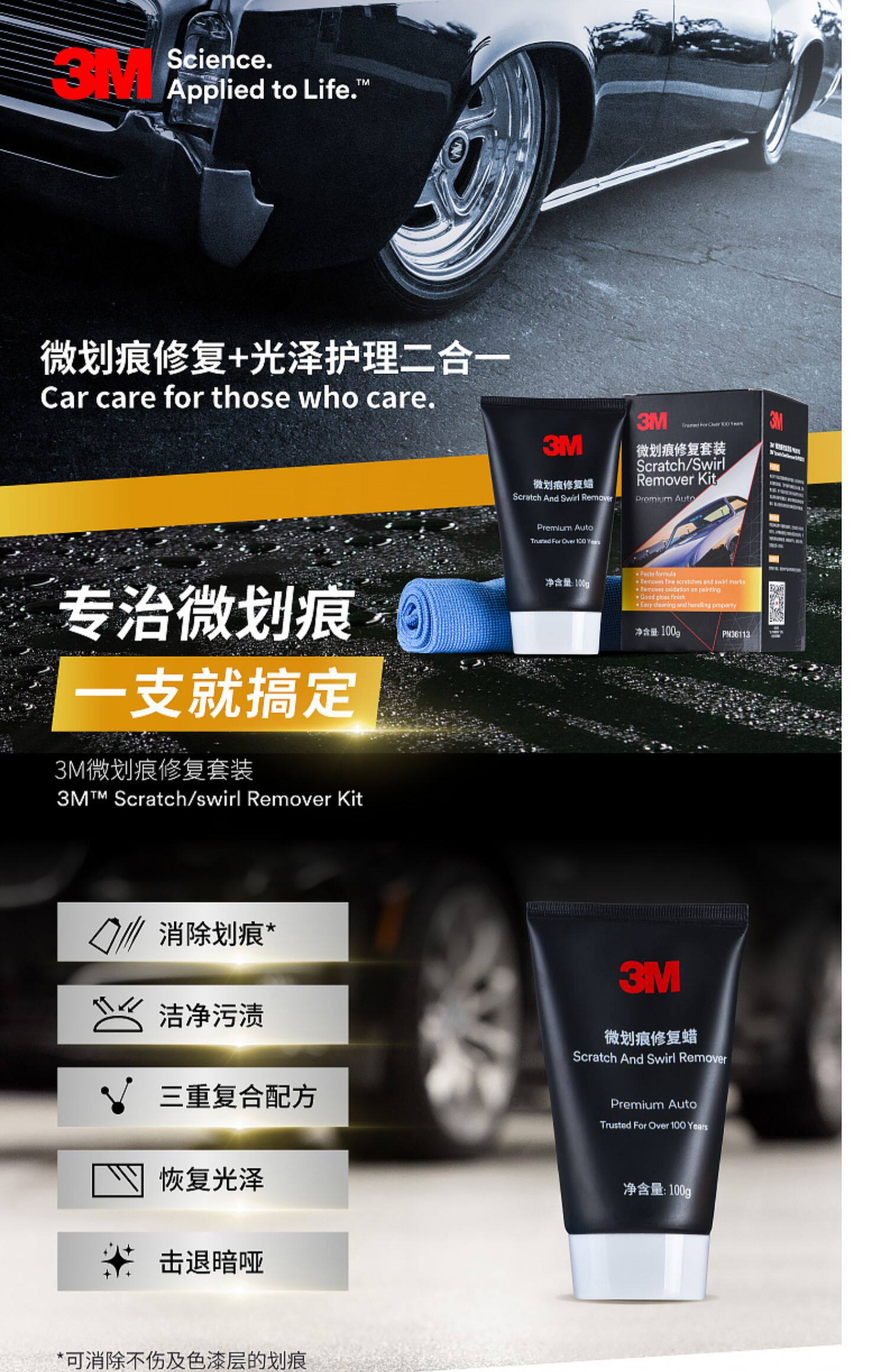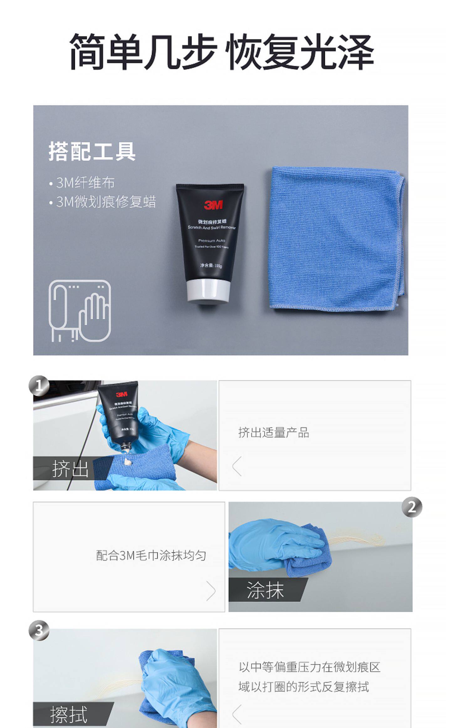 ДомМагазинАвтомобильный воскИнструмент для ремонта микроцарапин с воском 3M для черной и белой автомобильной краски: удаление микроцарапин, полировка и абразивная паста