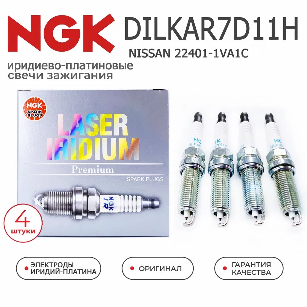 Иридиево-платиновые свечи зажигания NGK DILKAR7D11H 90565(Japan) комплект 4 шт. 22401-1VA1C для NISSAN Qashqai(J11)/X-Trail(T32) 2.0л. 144лс. c 2014г.в MR20DE MR20DD RENAULT M5R