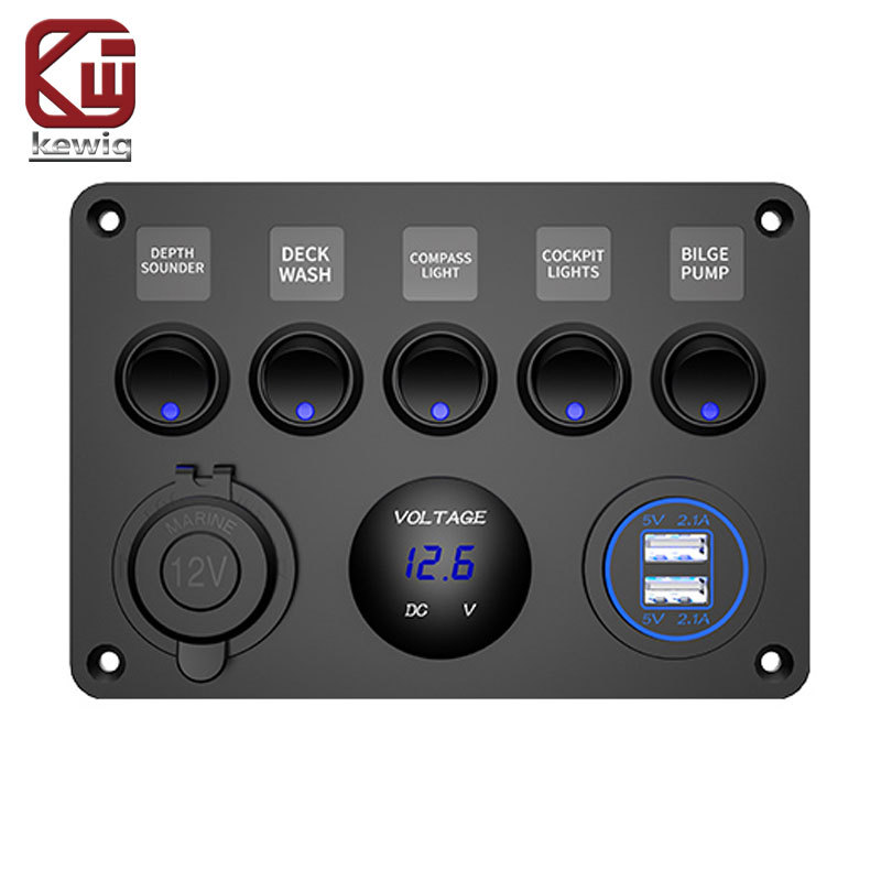 适用于船用卡车的12-24V 5位开/关切换开?6?7?6?7关面板双USB电压表