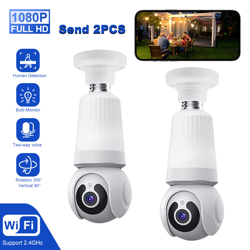 Комплект из 2 лампочек для домашнего освещения, камера видеонаблюдения HD E27, панорамная лампа с обзором 360 градусов, Wi-Fi, пульт дистанционного управления с мобильного телефона