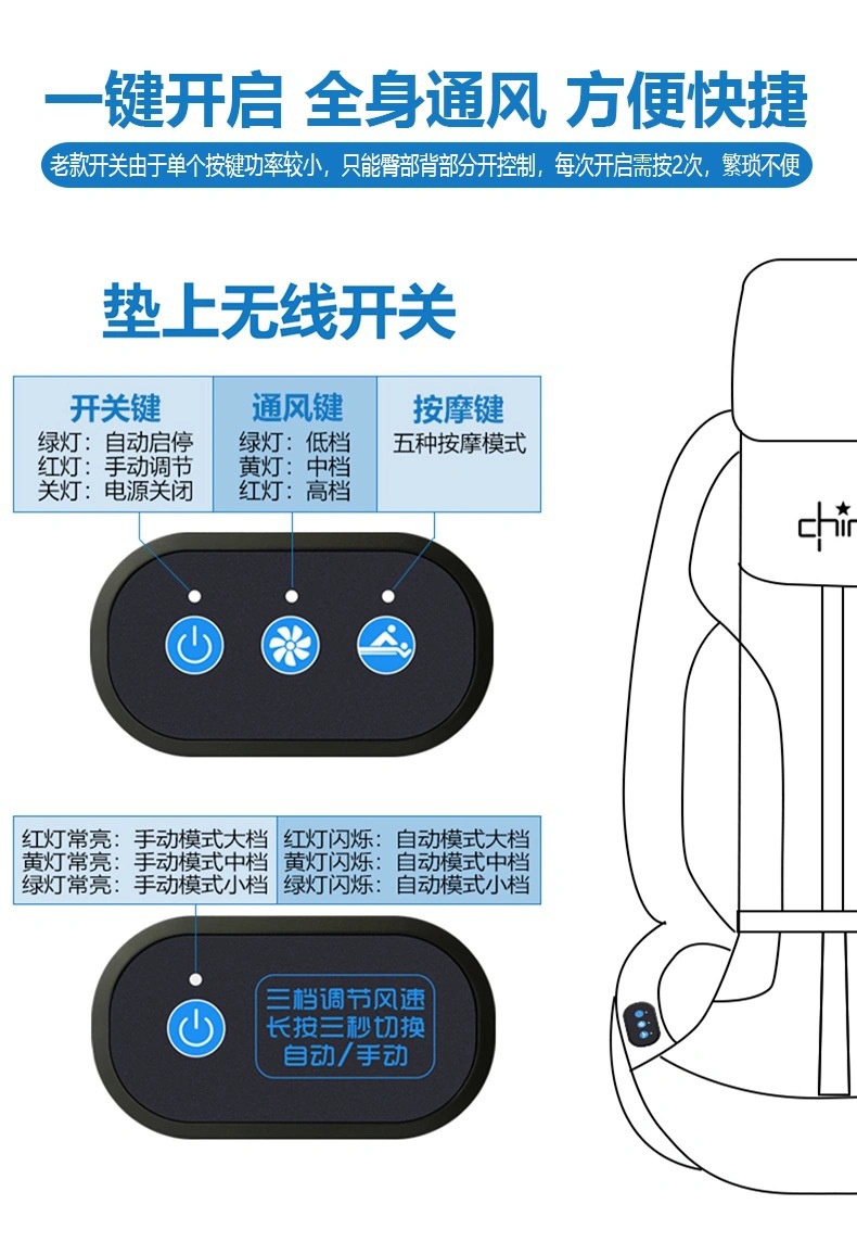功能 : 按摩、加热、制冷、通风