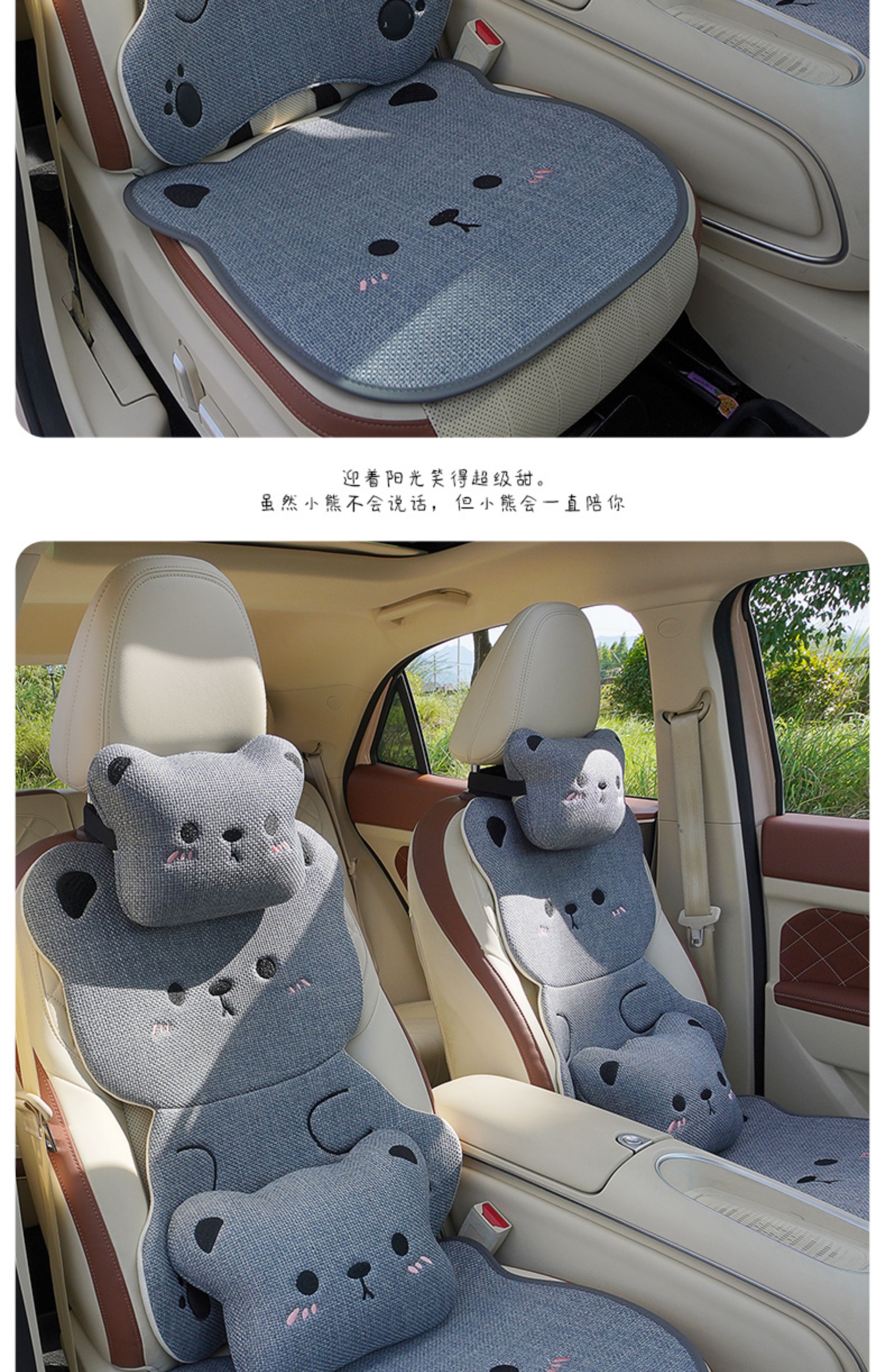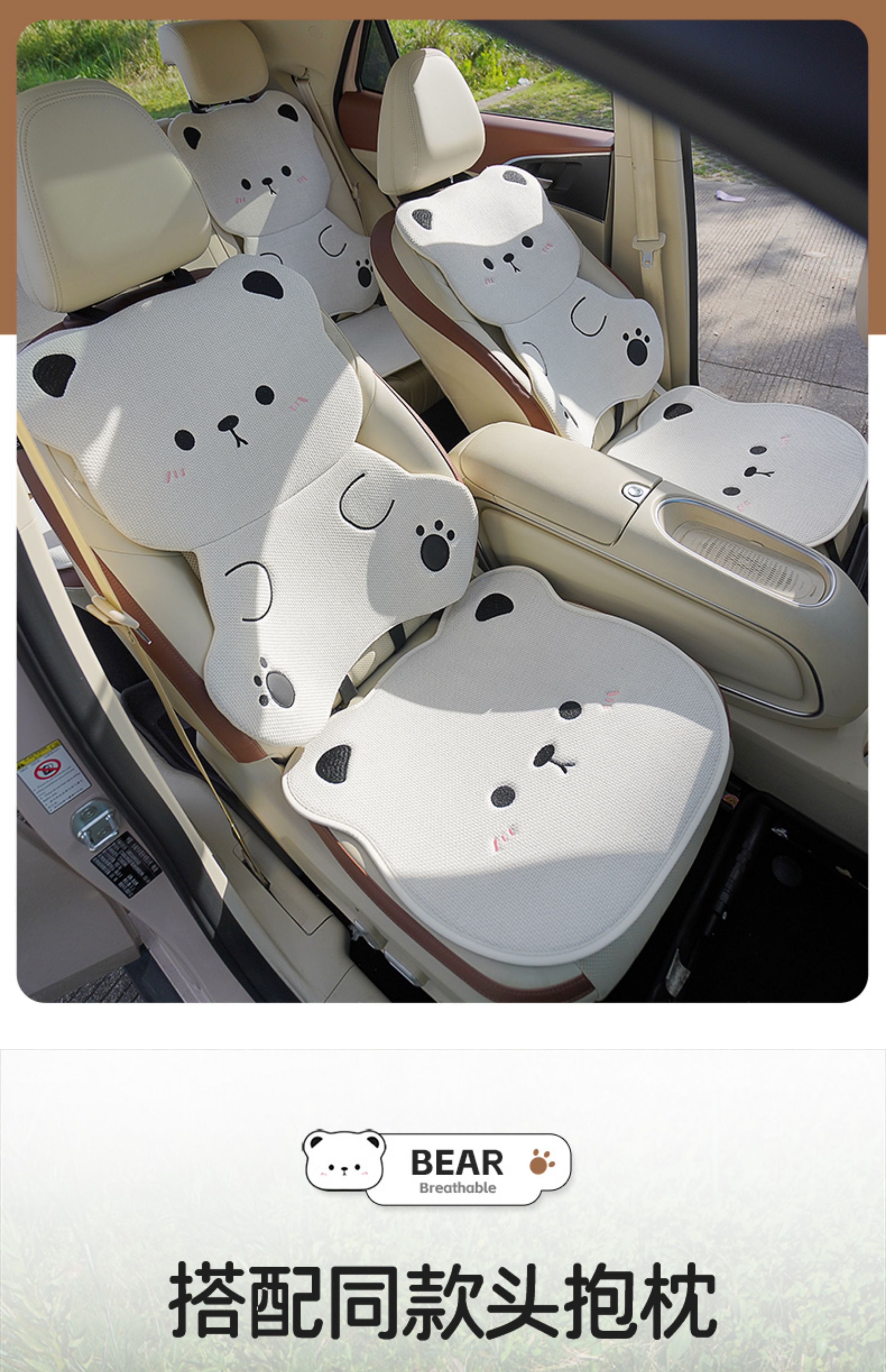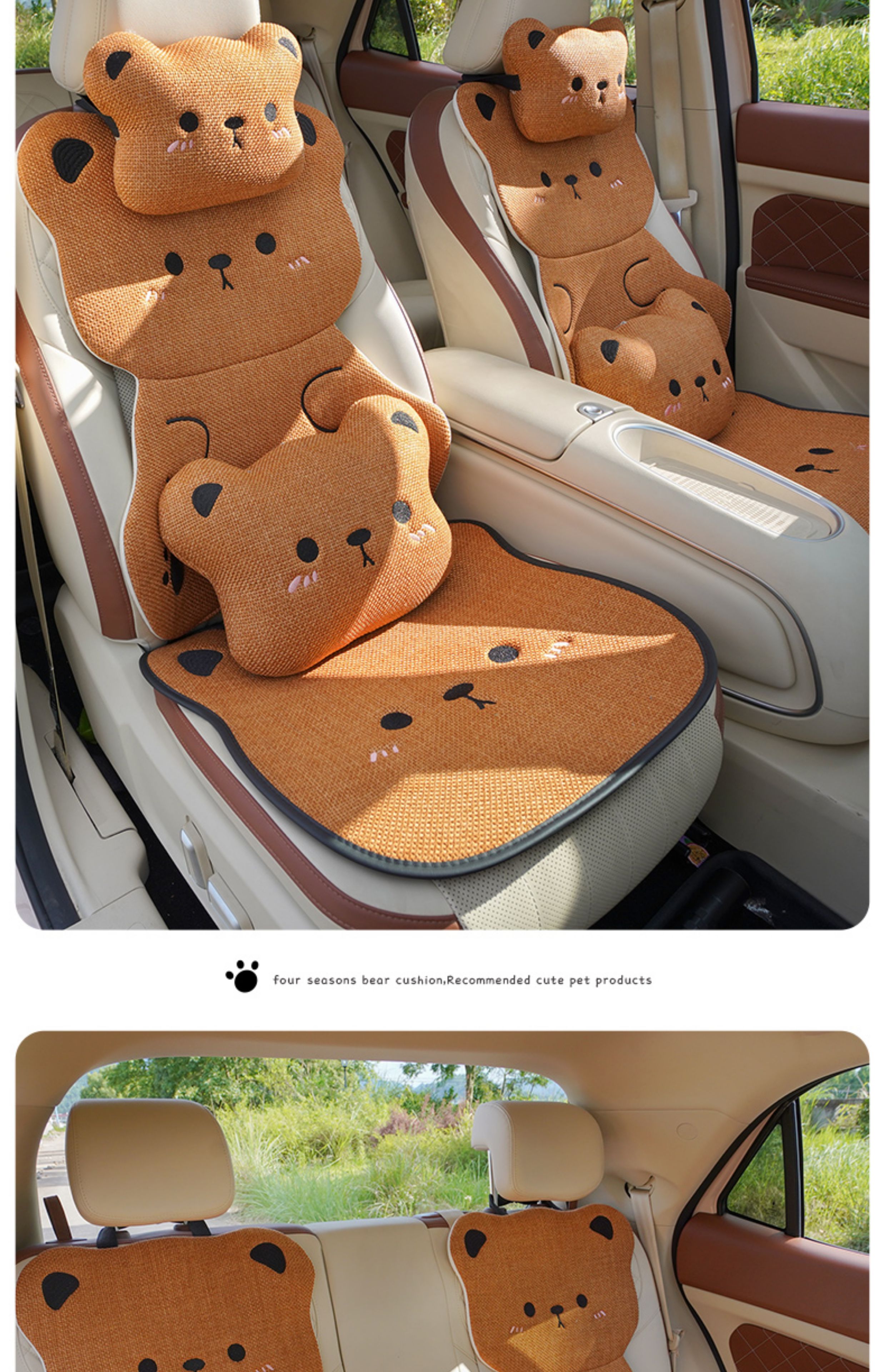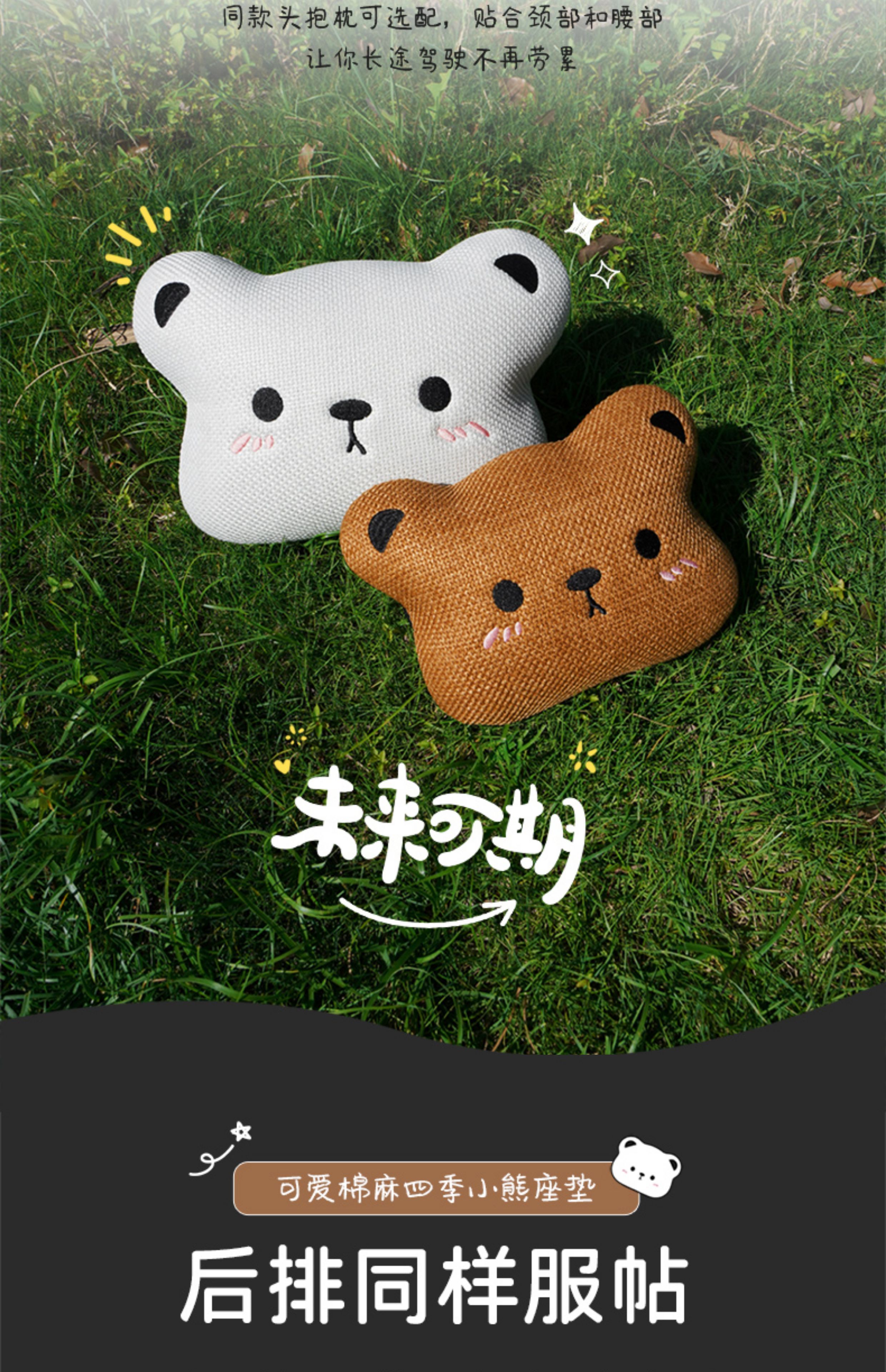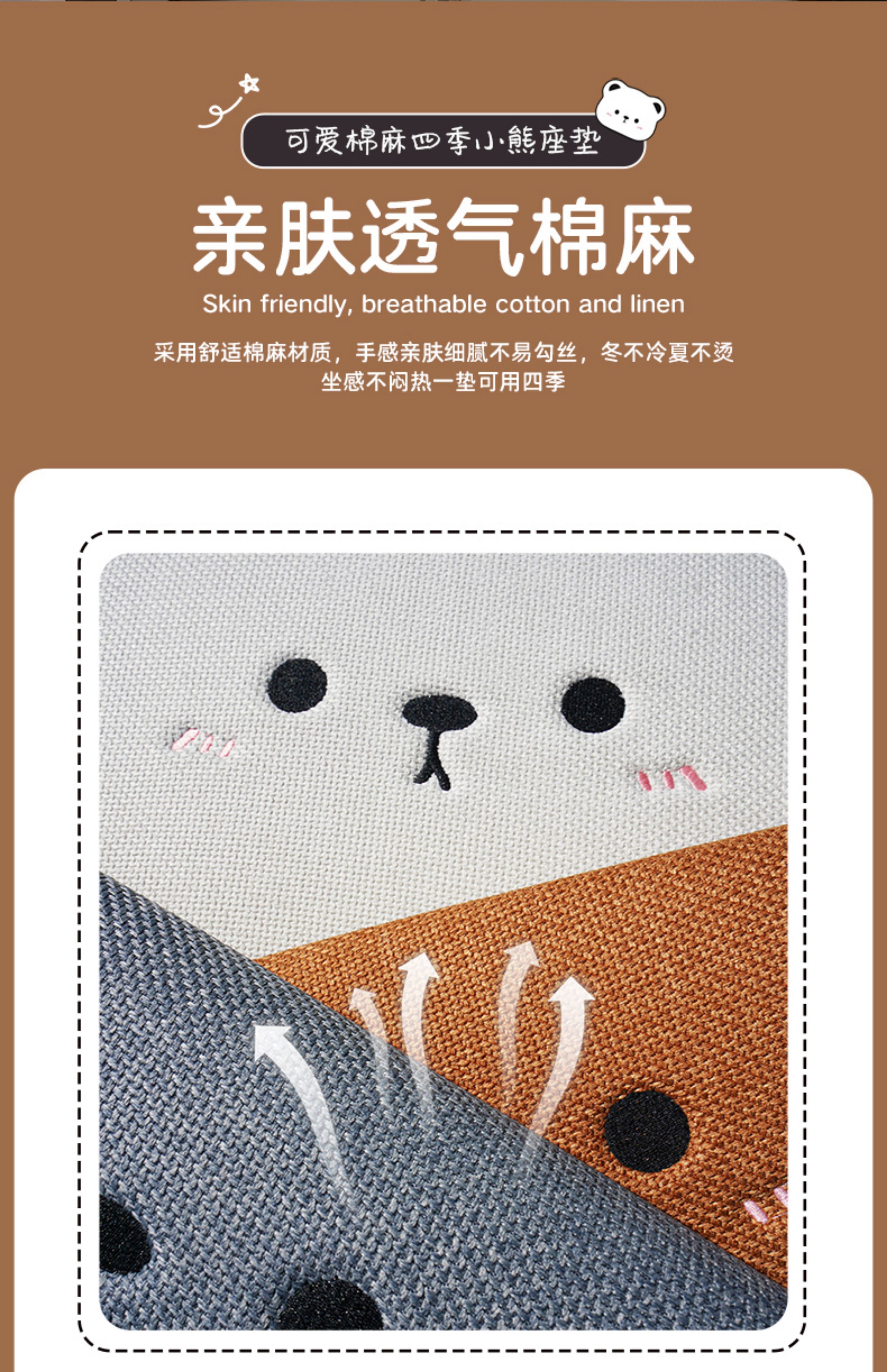 ДомМагазинЧехлы для автомобильных сиденийЛьняная подушка на сиденье автомобиля, подходит для любого сезона, дышащая летом, и милый чехол на сиденье в виде плюшевого медведя для женщин, цельный.