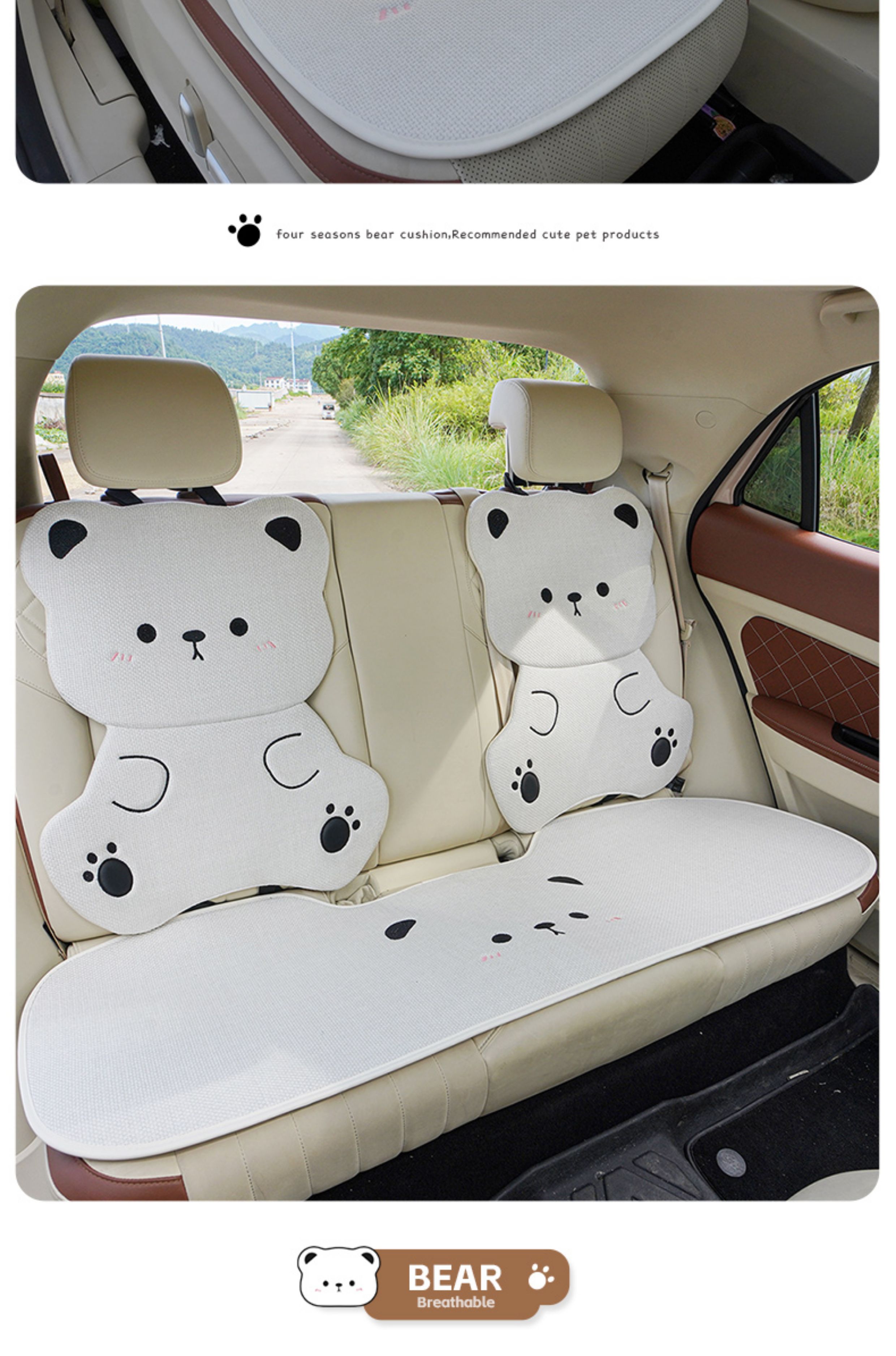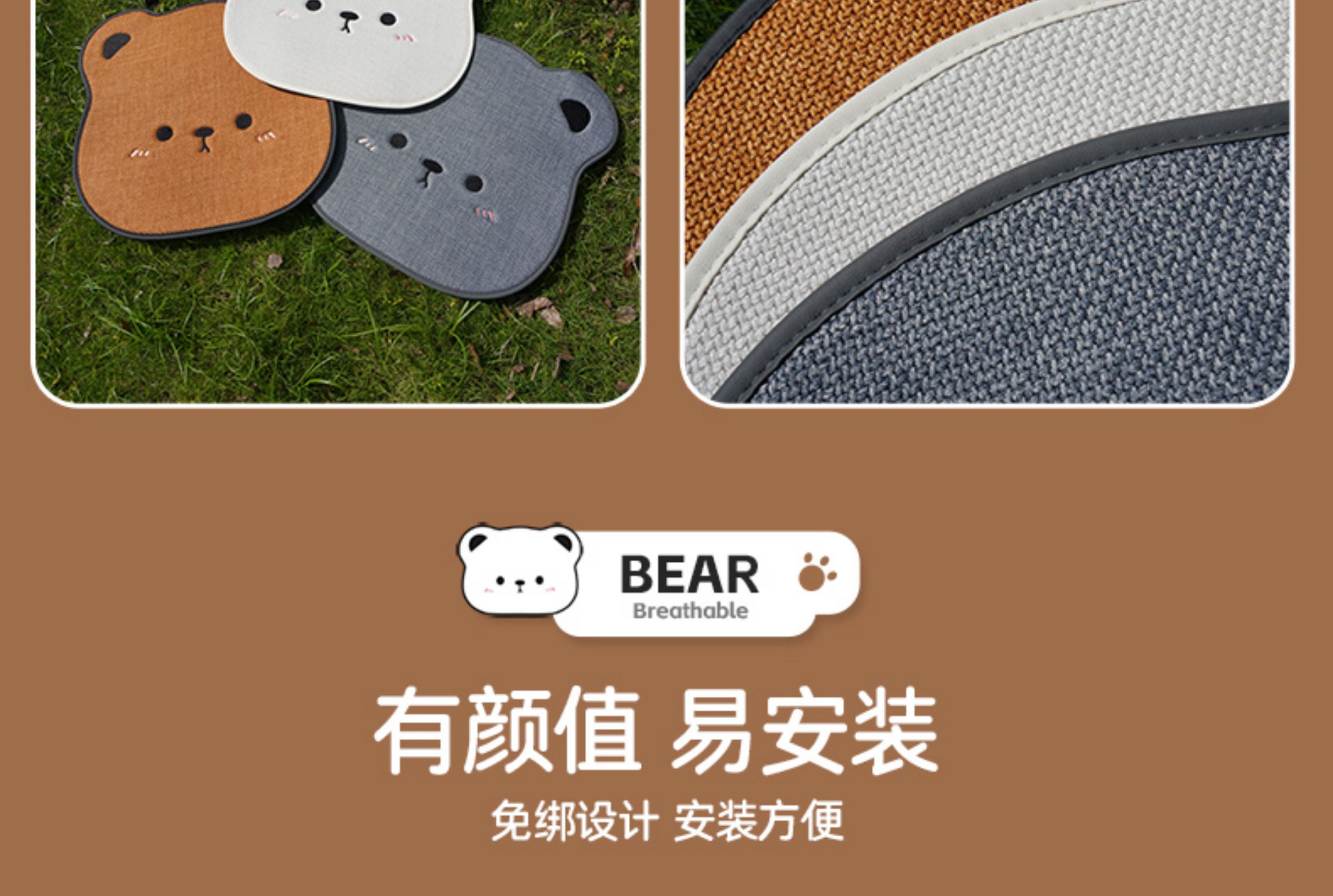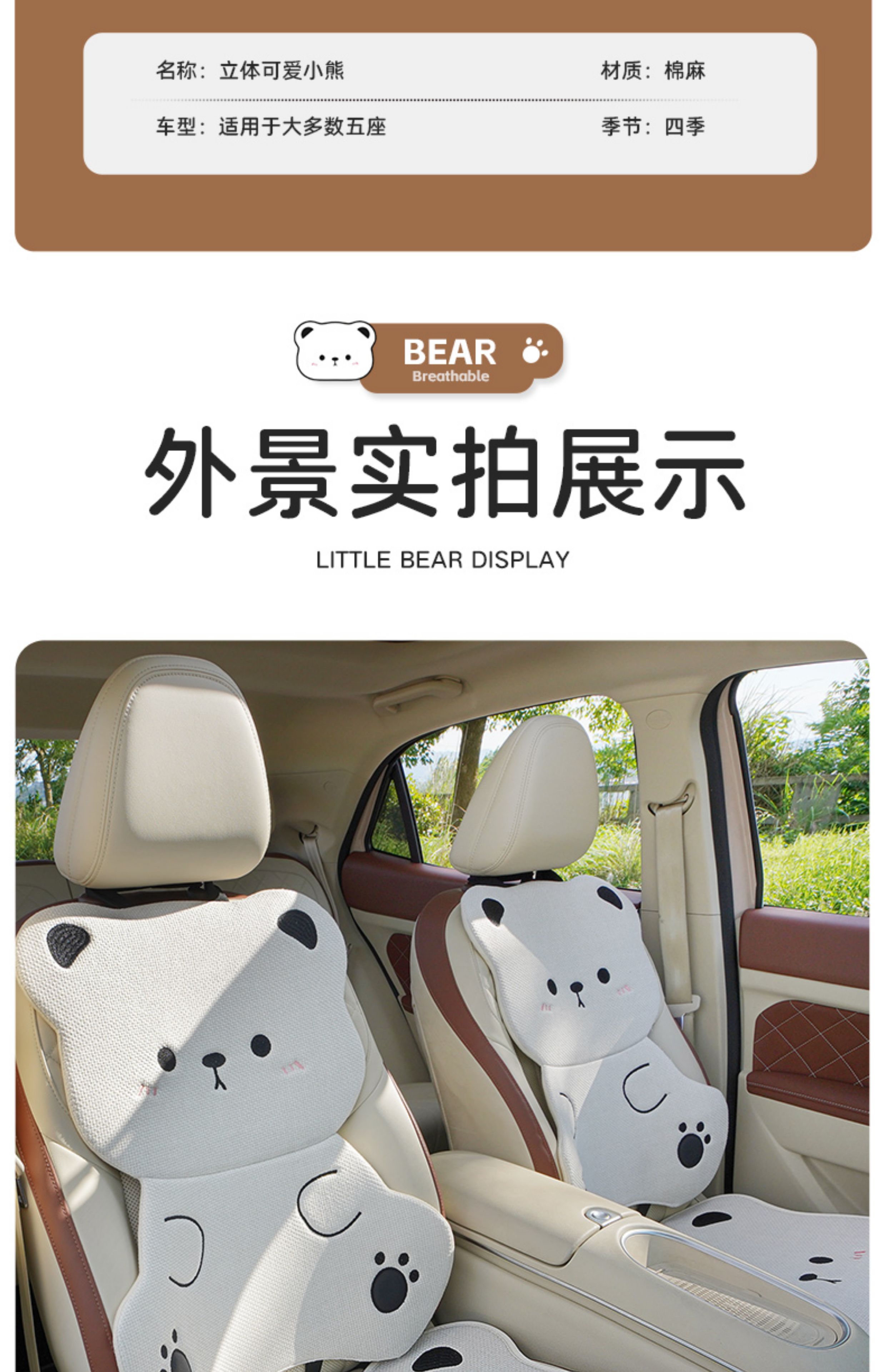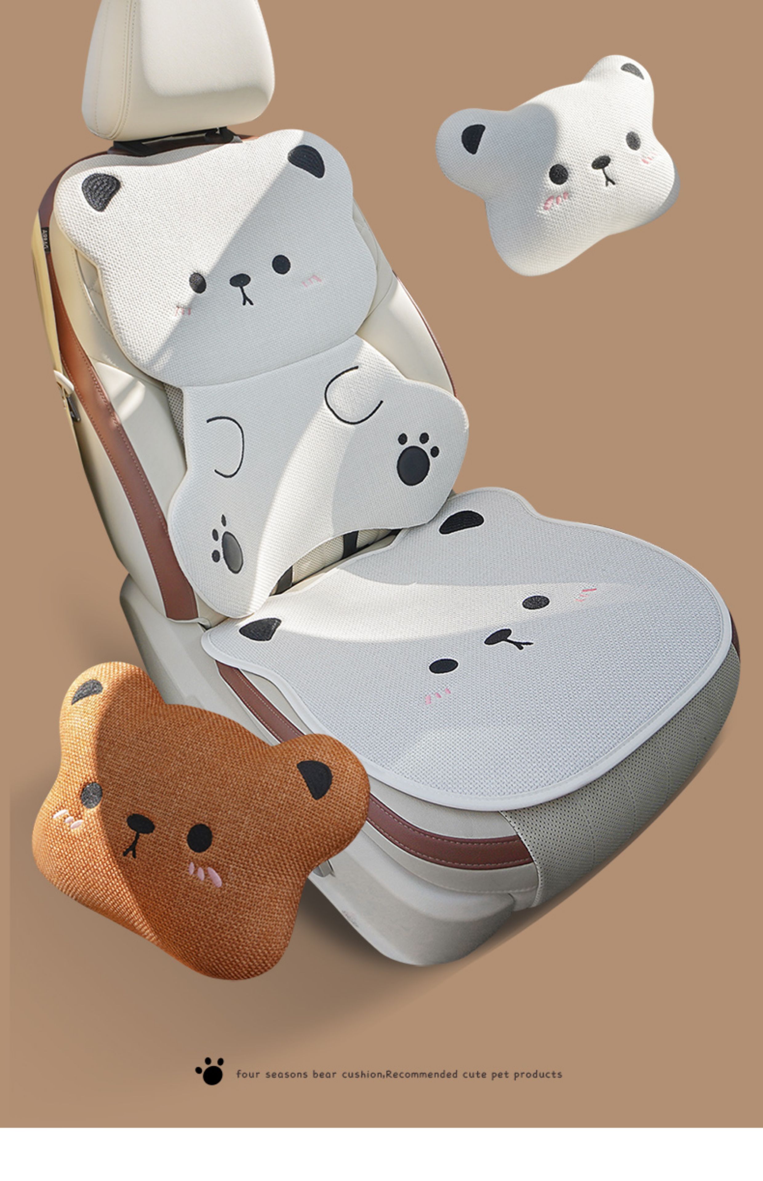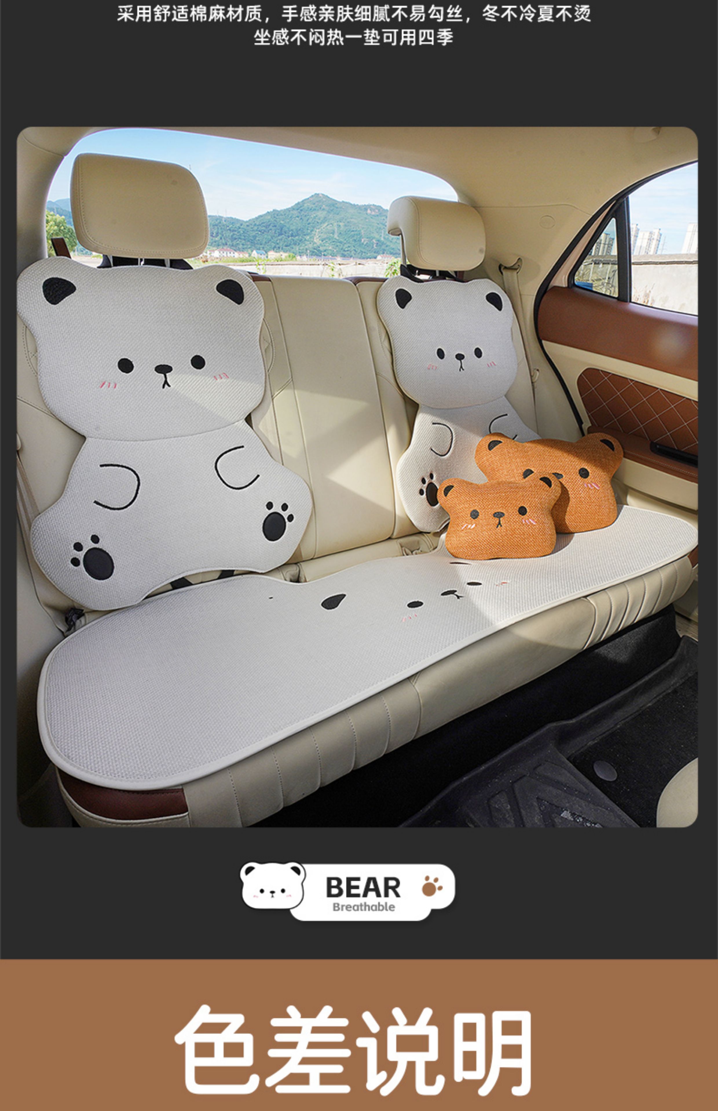ДомМагазинЧехлы для автомобильных сиденийЛьняная подушка на сиденье автомобиля, подходит для любого сезона, дышащая летом, и милый чехол на сиденье в виде плюшевого медведя для женщин, цельный.
