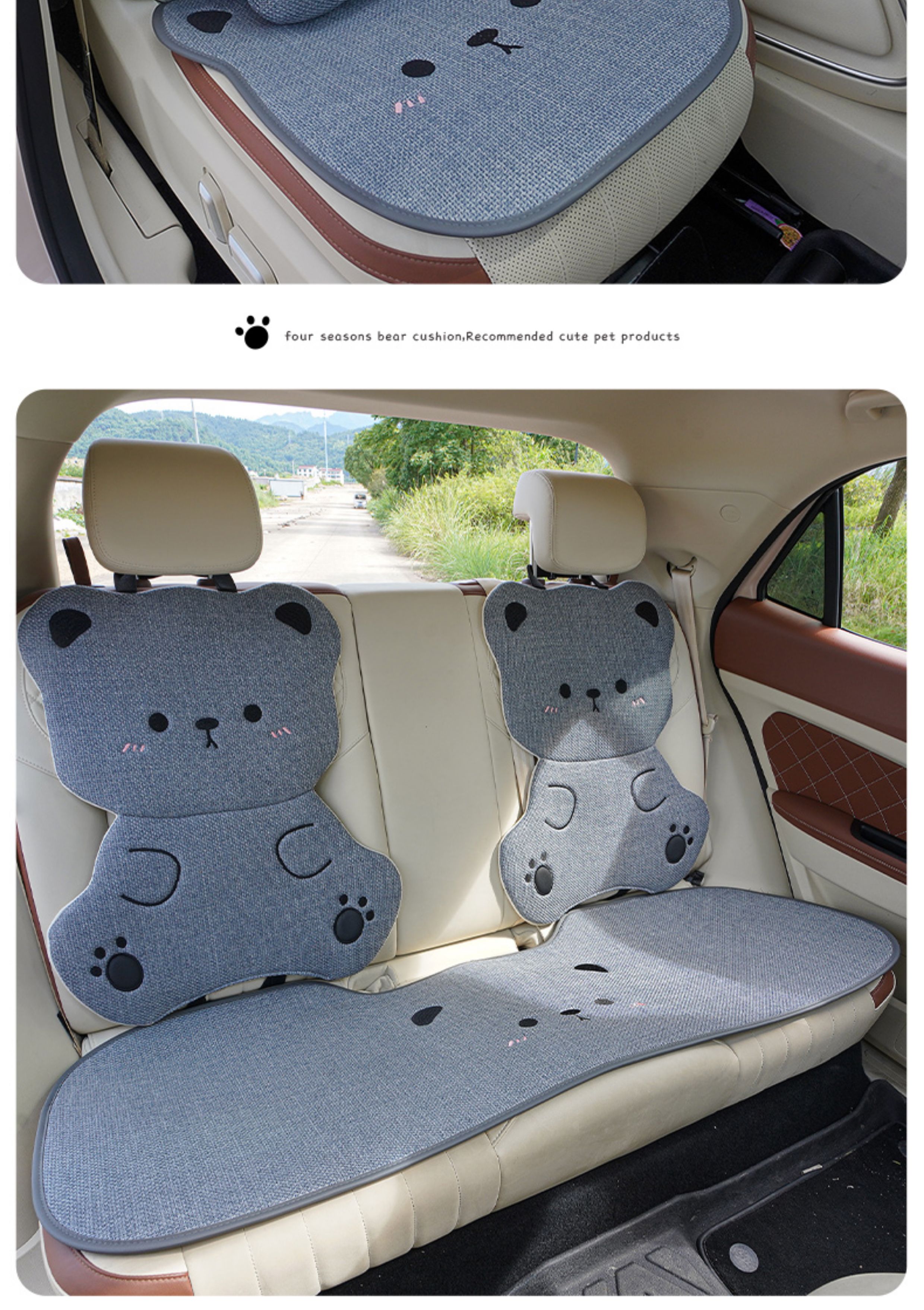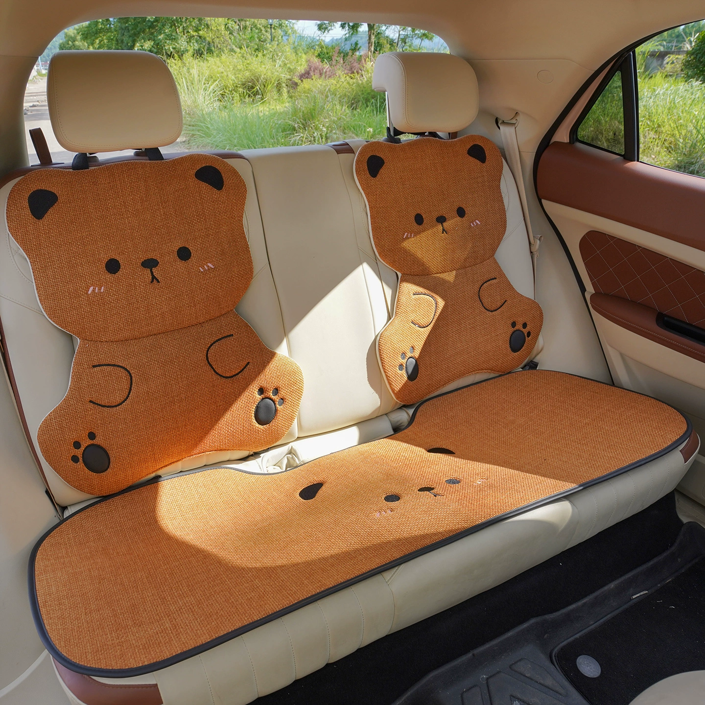 ДомМагазинЧехлы для автомобильных сиденийЛьняная подушка на сиденье автомобиля, подходит для любого сезона, дышащая летом, и милый чехол на сиденье в виде плюшевого медведя для женщин, цельный.