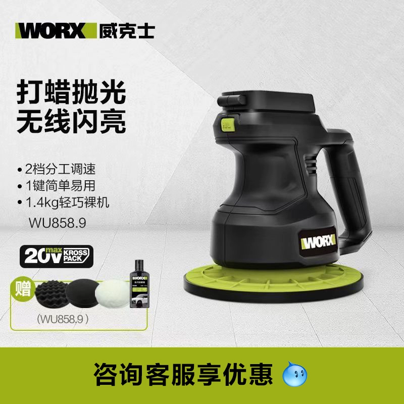 ДомМагазинМашина для полировки автомобилей воскомМашина для полировки и нанесения воска на автомобиль Worx WU858 — полный набор инструментов для удаления пятен с напольной плитки и автомобильной краски, незаменимая вещь для домашнего использования.