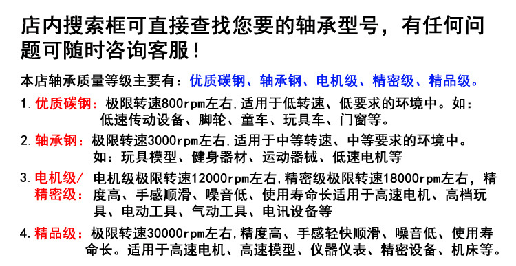 | модель | U604Z углеродистая сталь 4*13*4 мм стандартная точность, U604Z углеродистая сталь 4*13*4 мм слегка большая толерантность, U604Z, несущая сталь 4*13*4 мм Стандартная точность, U623-10Z углеродистая сталь 3*10*4 мм слегка большую допуску, U623-12Z Углеродистая сталь 3*4 мм слегка большая точка, U624z Carbon Steel 4*7*7*7*4*7 мм. U624Z подшипник сталь 4*13*7 мм стандартная точность, U624Z Высокая тихая сталь тихой вала 4*13*7 мм Стандартная точность, U83Z Сталь 3*10*3 мм Стандартная точность, V623Z углеродная сталь 3*12*4 мм слегка большую допуску, v623z, несущая сталь 3 мм, 3 мм. 4*13*6 мм слегка толерантный, V624Z Высокая тихая сталь для тихого вала 4*13*6 мм Стандартная точность, V624Z, подшипная сталь 4*13*6 мм Стандартная точность, V83Z Steel 3*10*3 мм Стандартная точность, другие модели или размеры, пожалуйста, свяжитесь с клиентами. |