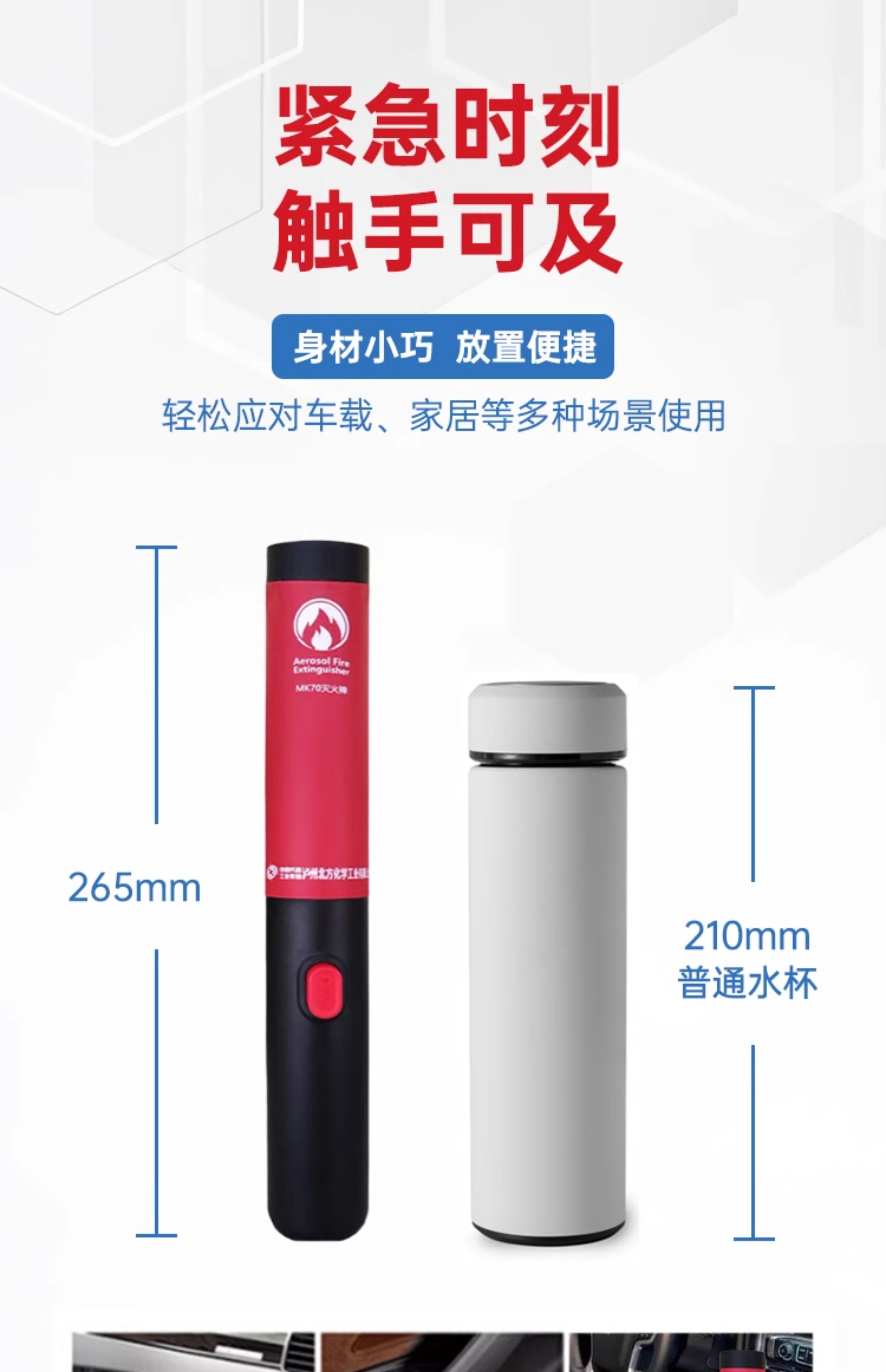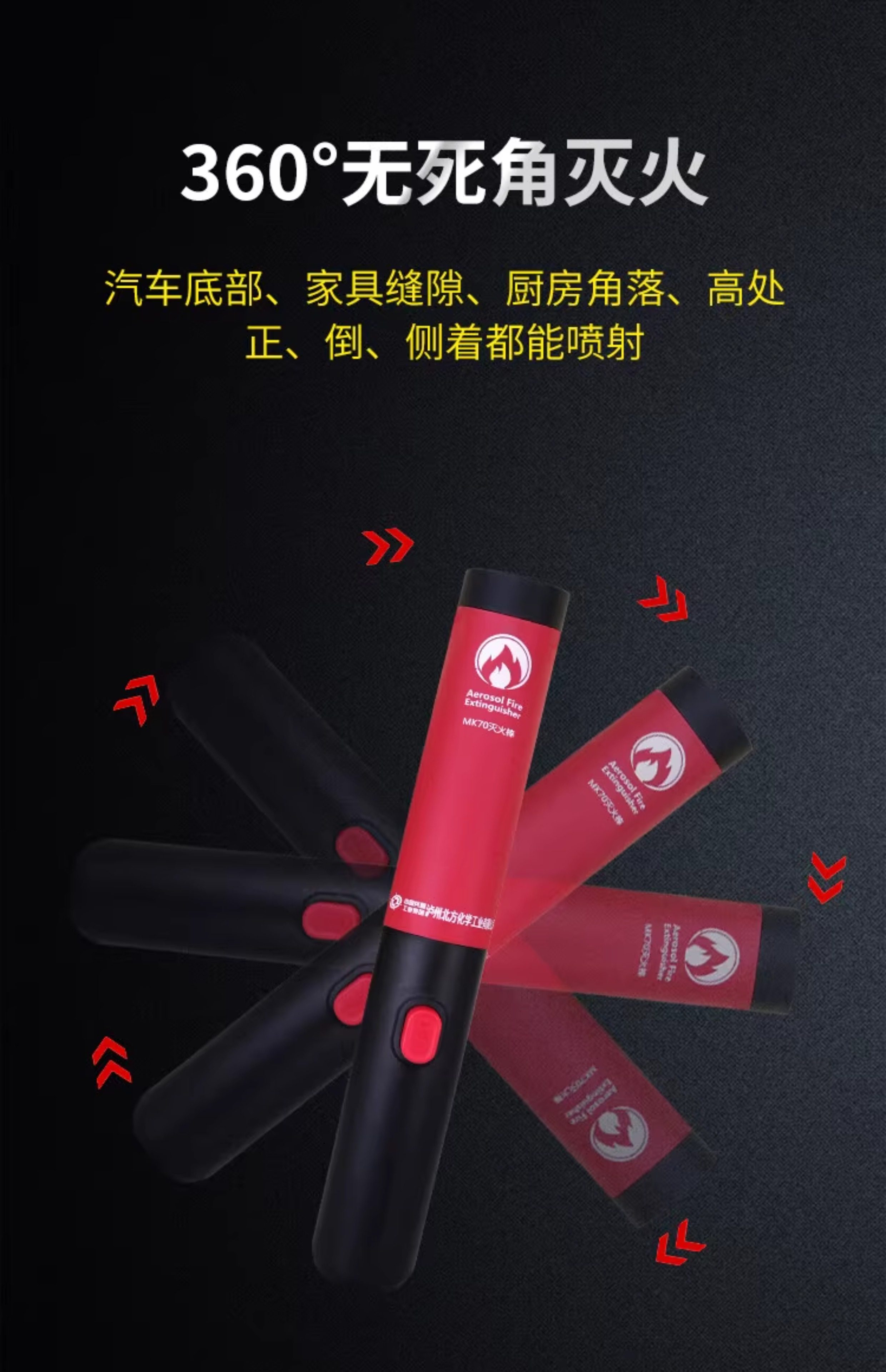 Многофункциональный аэрозольный огнетушитель MK70-D производства China Ordnance, устанавливаемый на транспортное средство, является незаменимым средством для разбивания окон и эвакуации во время вождения.