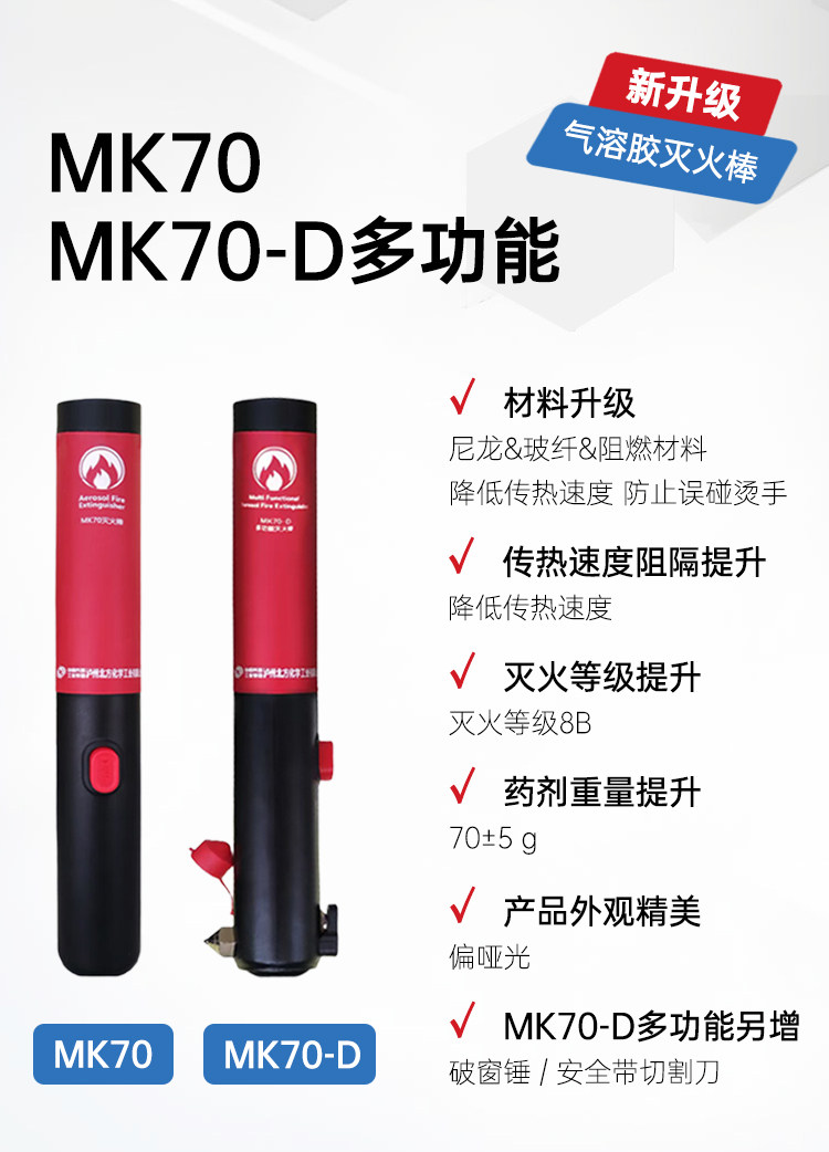 ДомМагазинОгнетушитель для транспортных средствМногофункциональный аэрозольный огнетушитель MK70-D производства China Ordnance, устанавливаемый на транспортное средство, является незаменимым средством для разбивания окон и эвакуации во время вождения.