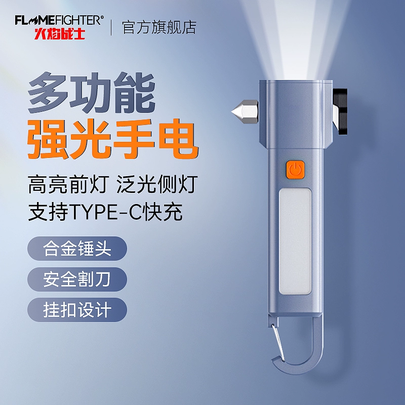 ДомМагазинИнтерьер автомобиляМногофункциональный мощный фонарик, перезаряжаемый, долговечный, с зумом на открытом воздухе, для использования в автомобиле и дома, как аварийный молоток, для разбивания окон, сверхъяркий, для кемпинга