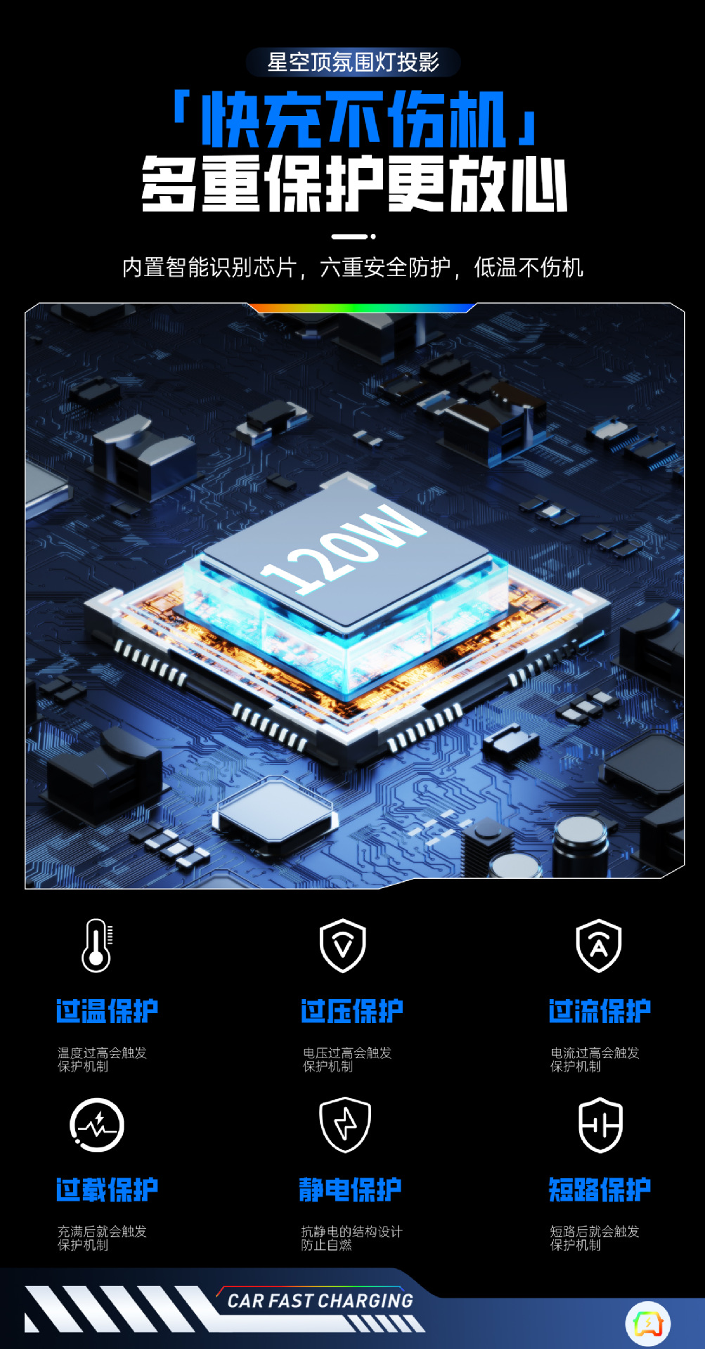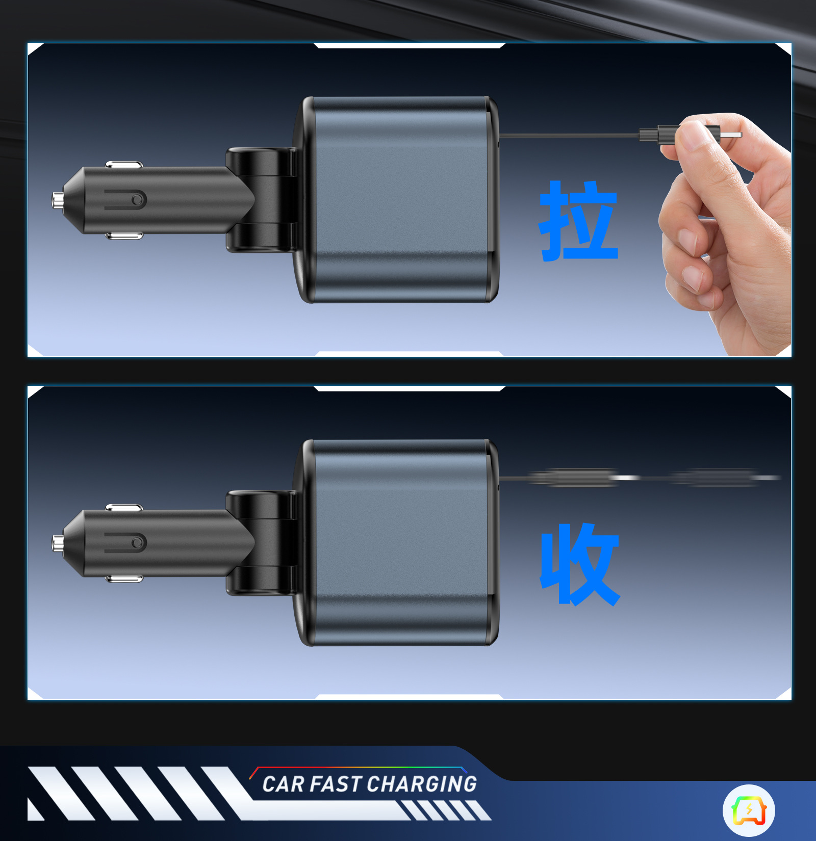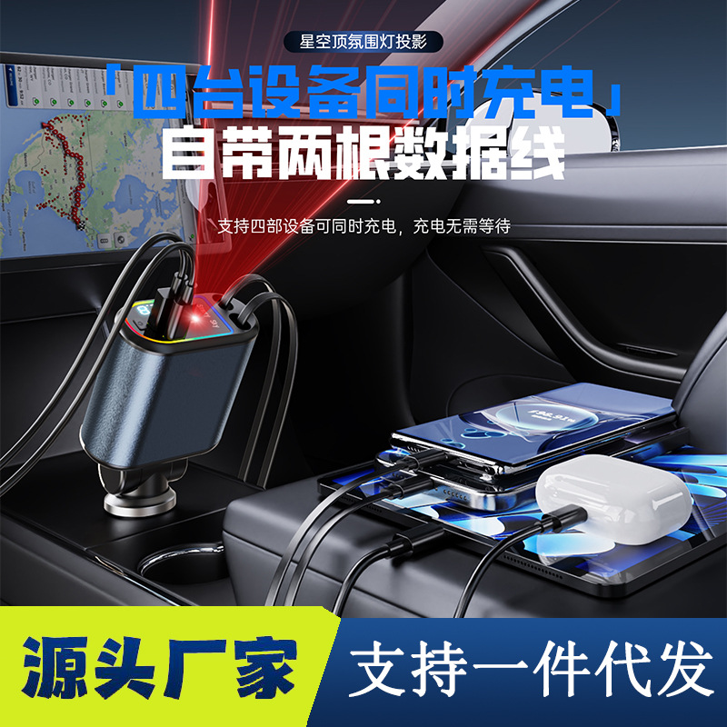 ДомМагазинАвтомобильное зарядное устройствоМногофункциональный цифровой дисплей с подсветкой звездного неба, сверхбыстрая зарядка, 120 Вт, втягивающийся автомобильный кабель, автомобильное зарядное устройство «четыре в одном» из металла