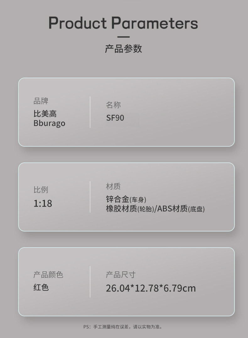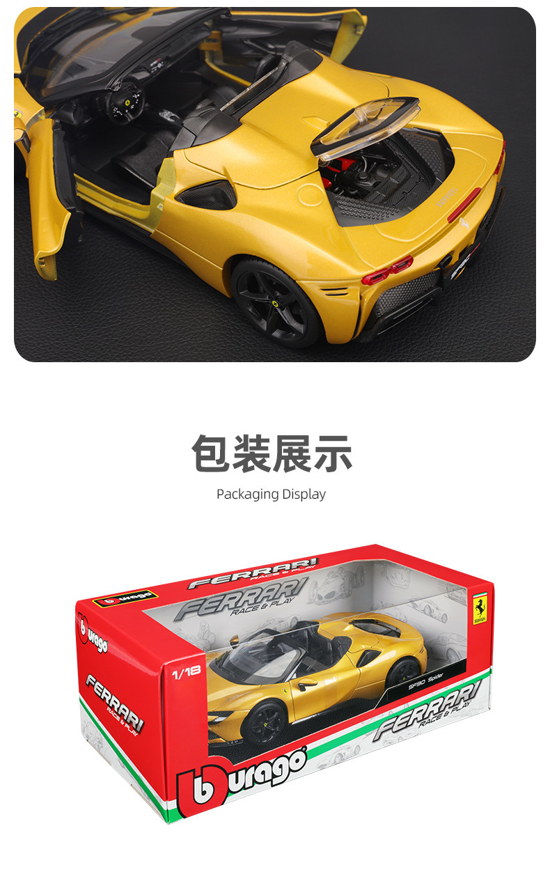 | цвет | Ferrari SF90 Spider — красный, Ferrari SF90 XX оранжево-красный, Ferrari SF90 Spider — золотой (чёрные ступицы), Ferrari SF90 XX металлик красный, Ferrari SF90 Stradale — красный (чёрные ступицы) |