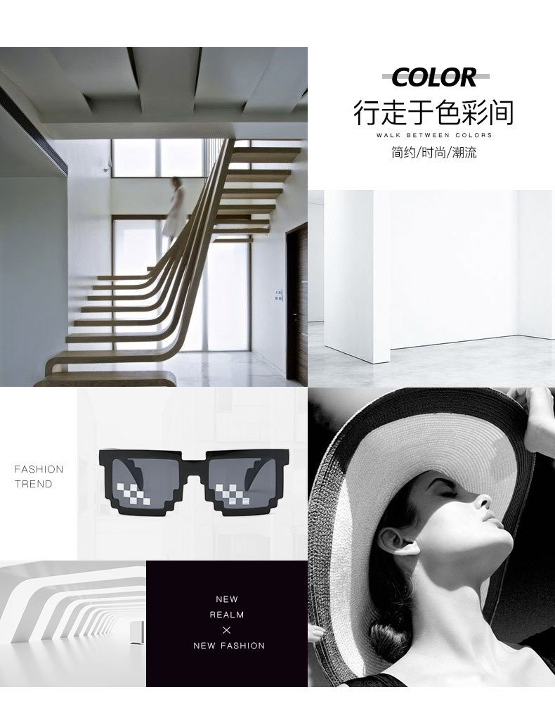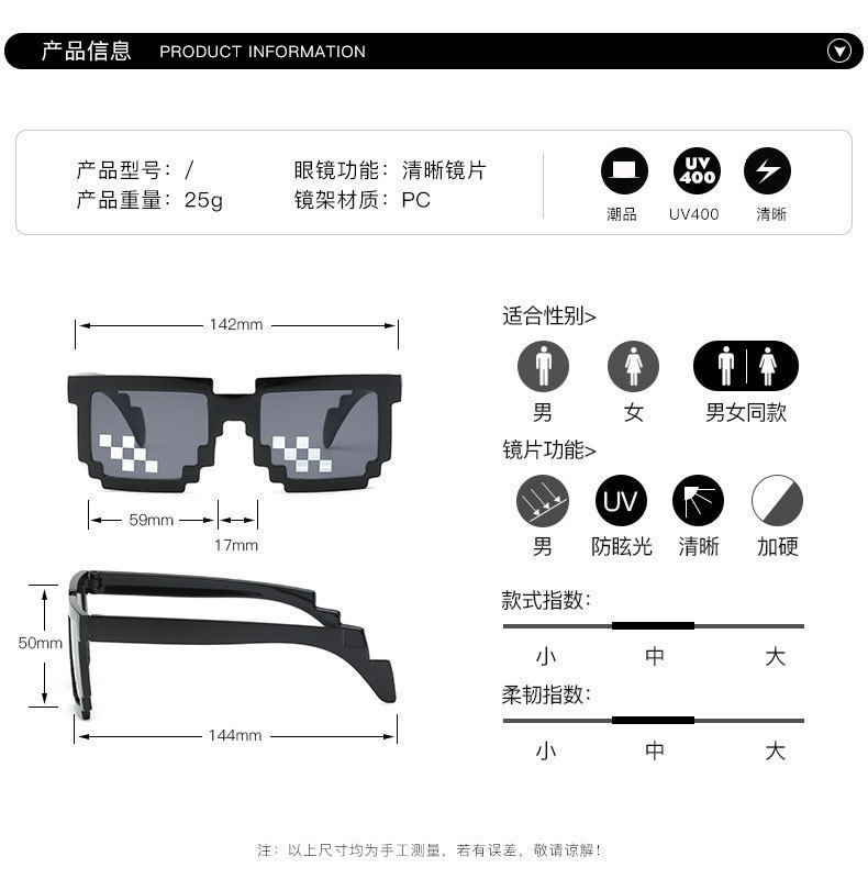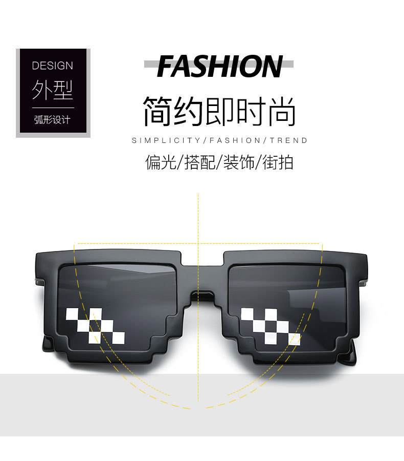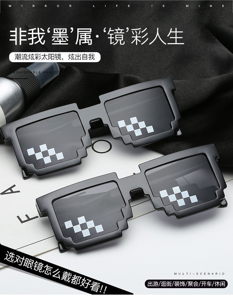 ДомМагазинЗащитная сеткаМозаичный реквизит, очки, живой, забавный артефакт, студенческое выступление, черные солнцезащитные очки, вечеринка, личность, пиксельные солнцезащитные очки