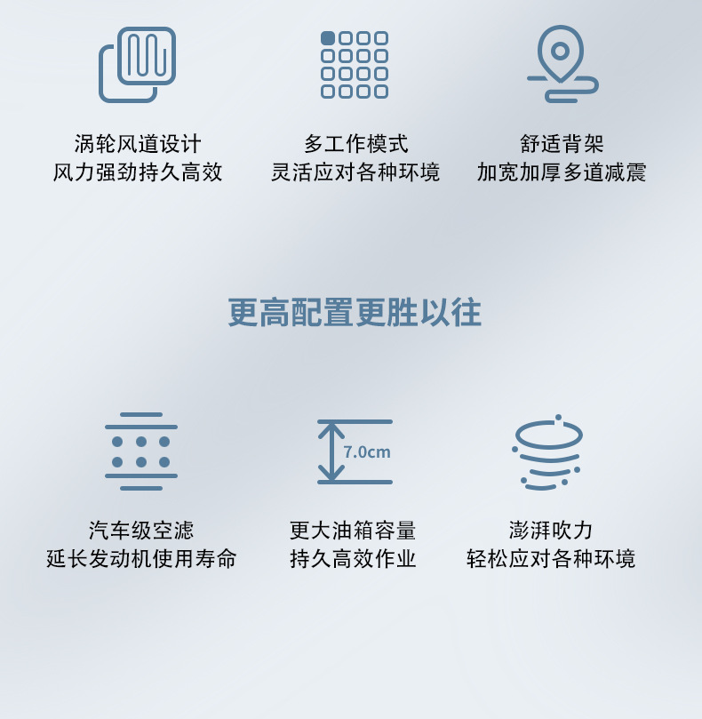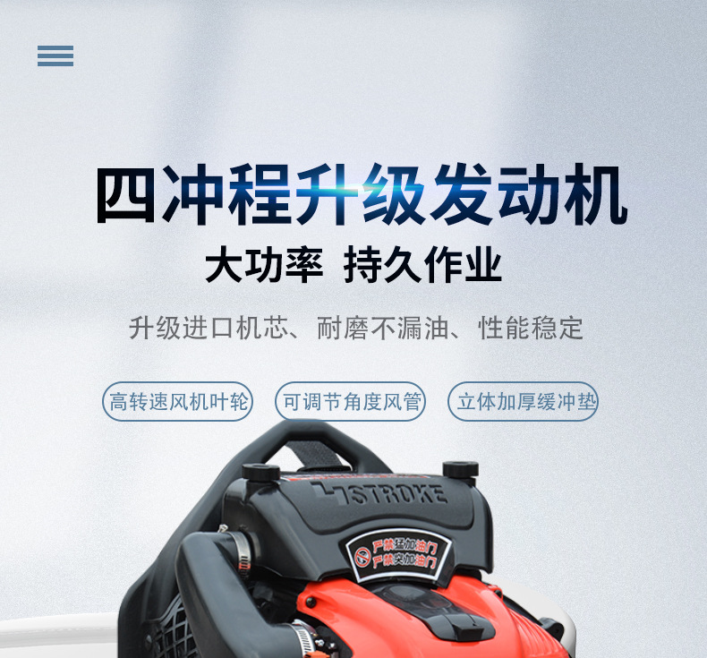 28、采用 4中程纯汽油发动机,加上优化设计制造的风机叶轮,风力强劲有力;