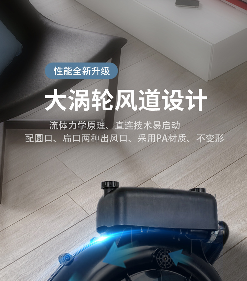 2、出风口风量:>0.45m3/s,风速:>100m/s;