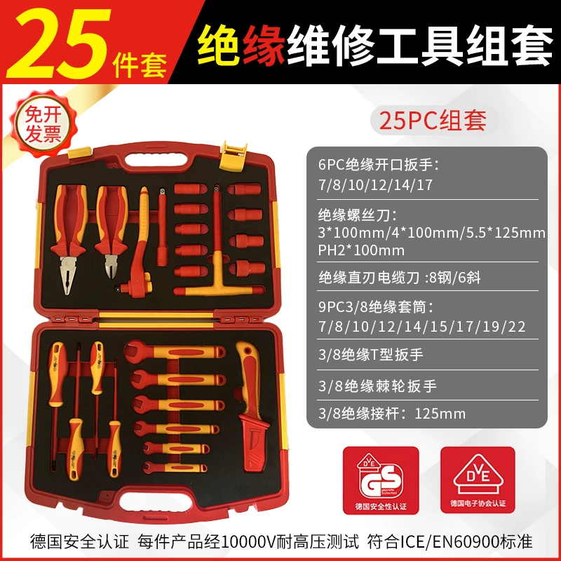 ДомМагазинРемонт автомобилейНабор инструментов для изоляции New Energy из 25 предметов, набор для авторемонта, ключ для электрика, износостойкие и устойчивые к давлению торцевые плоскогубцы