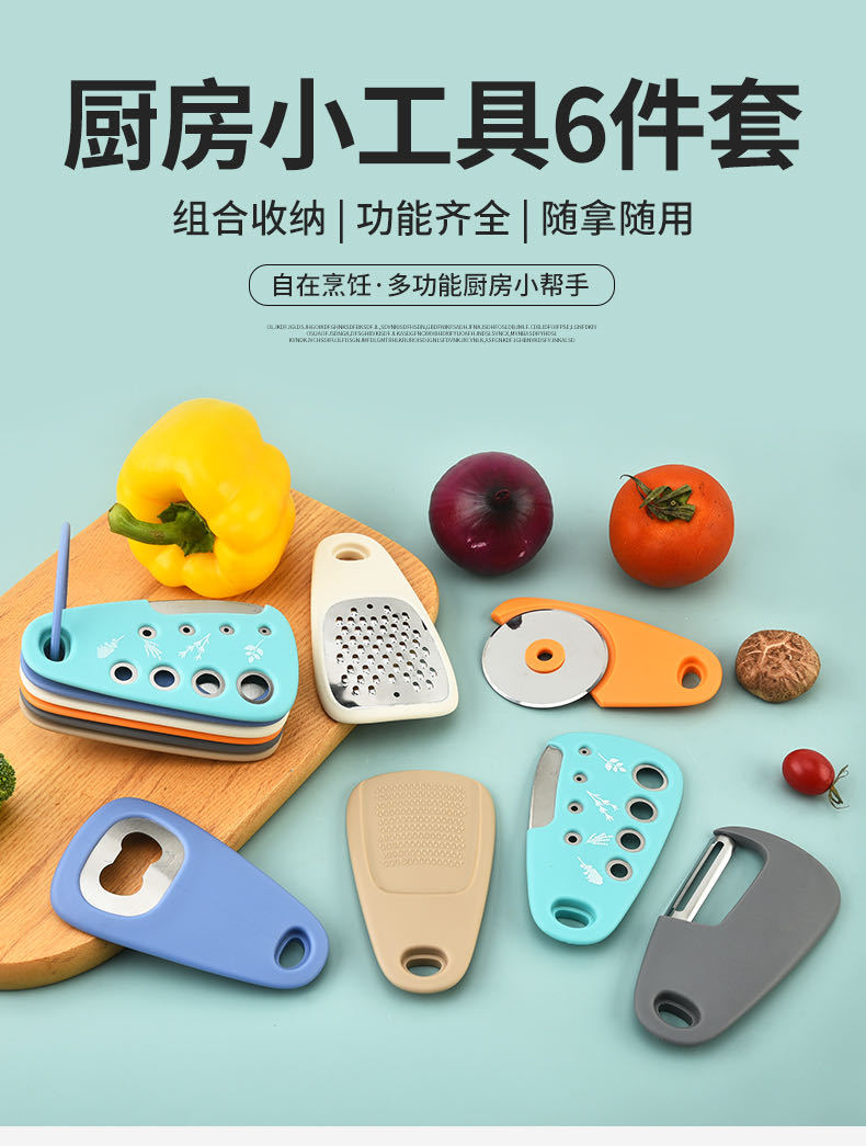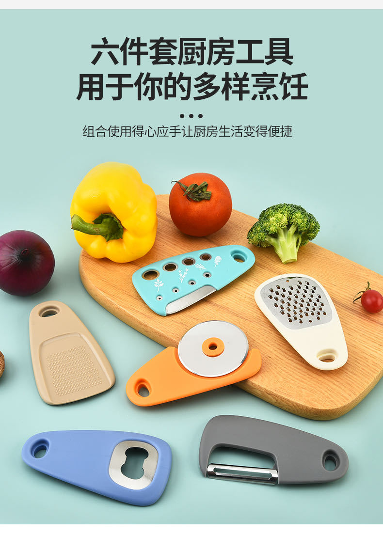 ДомМагазинБананы в автомобилеНабор кухонных гаджетов из 6 предметов: нож для пиццы, резак для зелени, открывалка для бутылок, терка, измельчитель чеснока, набор Amazon