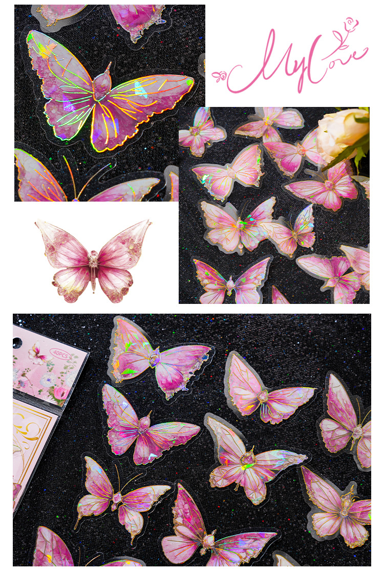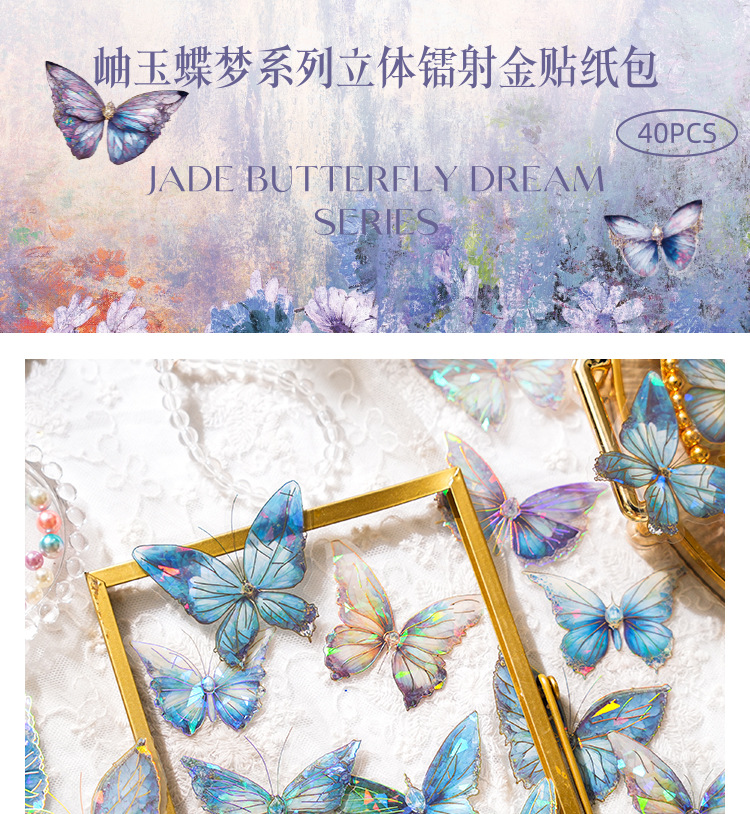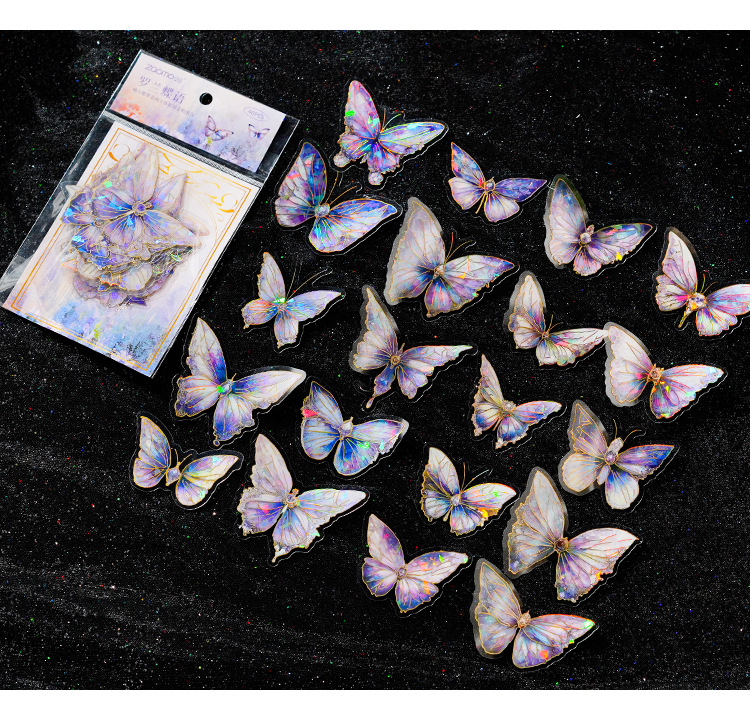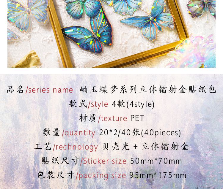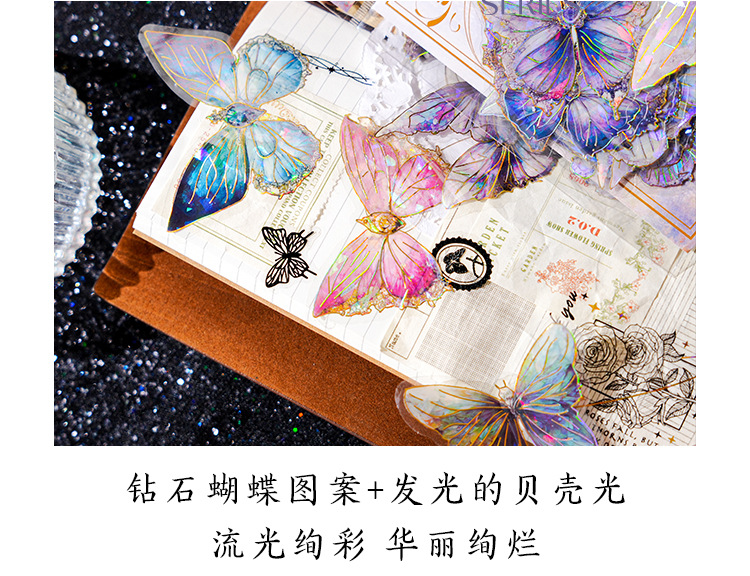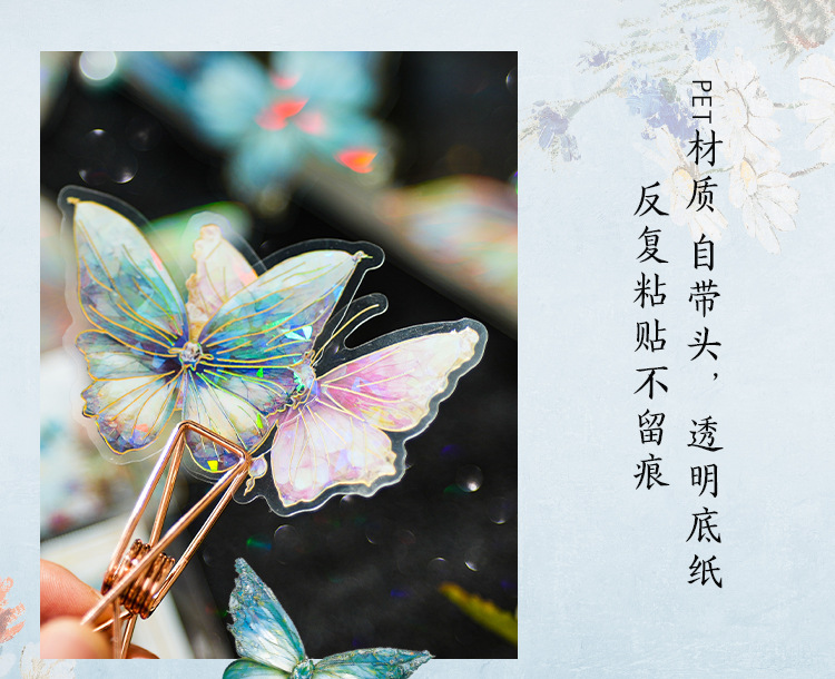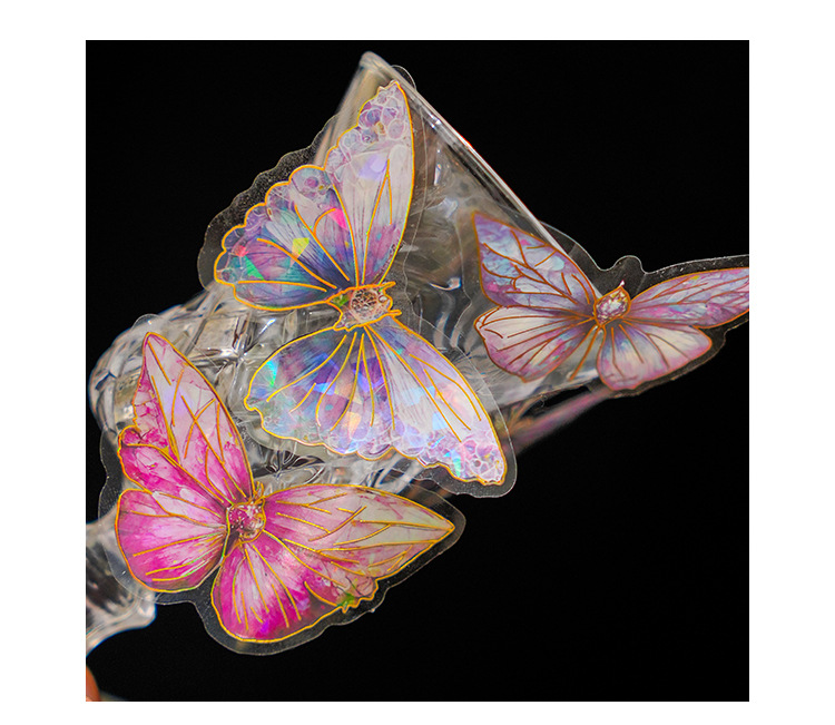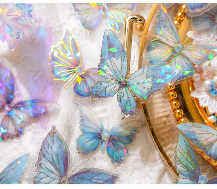 ДомМагазинАвтомобильный MP5Набор наклеек для ноутбука Zao Moxiu Jade Butterfly Dream Series PET Ice Crystal Laser Gold, ретро-наклейка для бабочки в стиле INS
