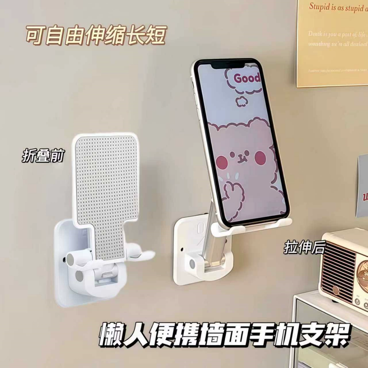 ДомМагазинПодставка для телефонаНастенный держатель для телефона/планшета, зарядная стойка, складной, выдвижной, с клейким настенным креплением.