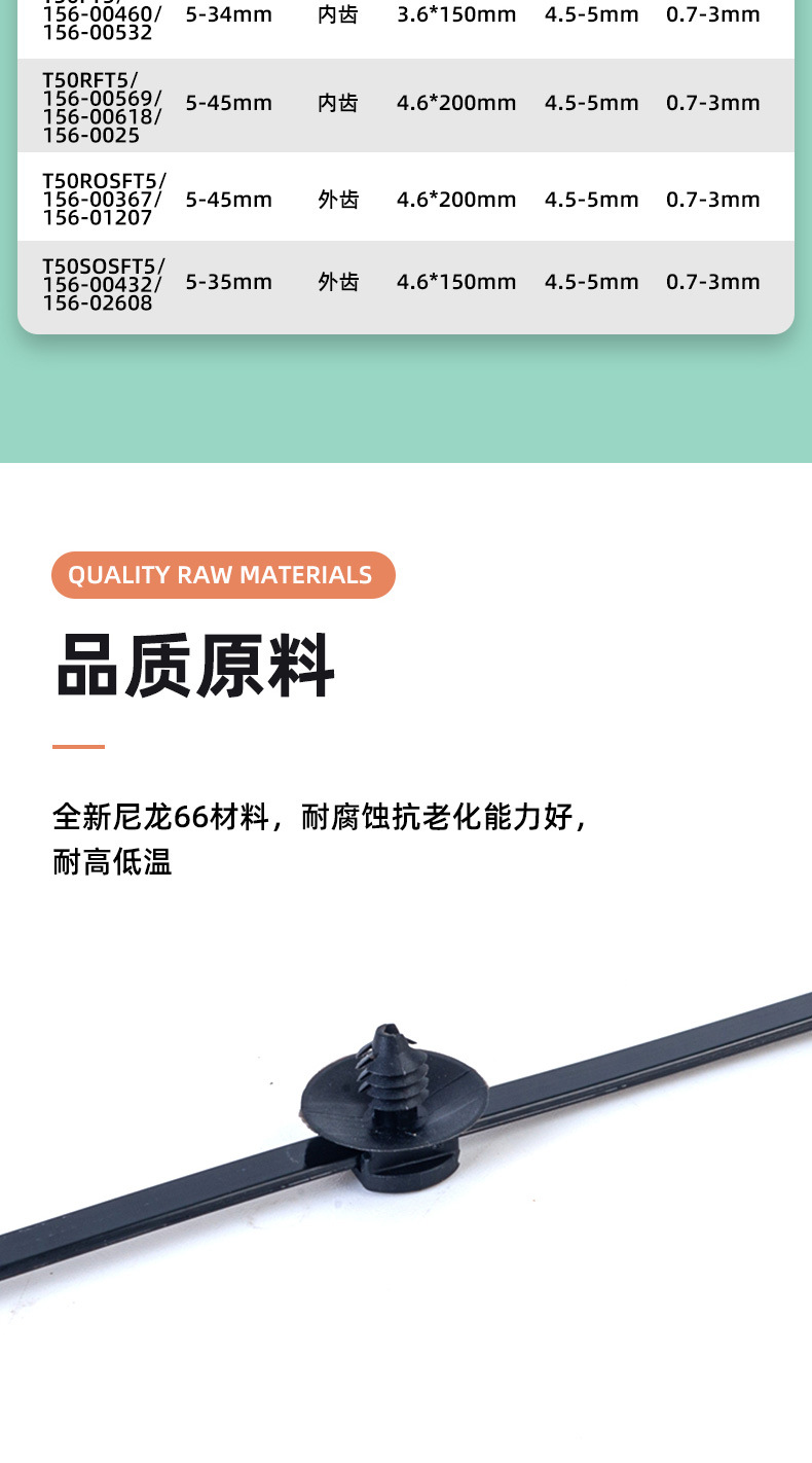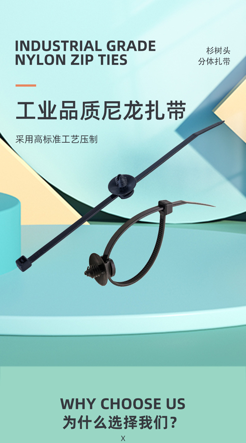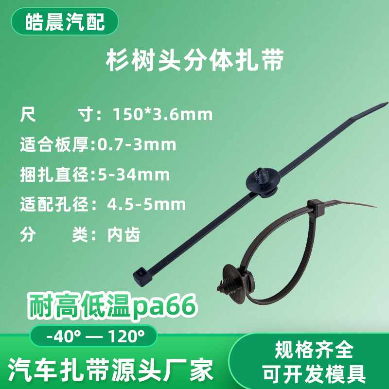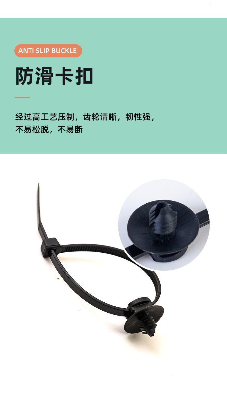 属性 : 汽车分体式固定束线带卡扣飞机头螺纹头扎带耐高温国标环保新料汽车内部束线阻燃扎带