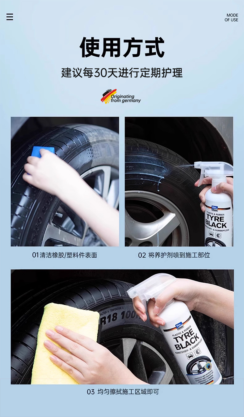 ДомМагазинАвтомобильный воскНемецкий воск для автомобильных шин, блескообразователь для шин, глазурь, чернение, поддержание долговечности, защита шин, масло против старения.