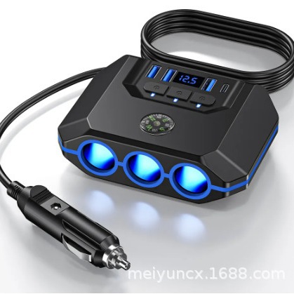 ДомМагазинАвтомобильное зарядное устройствоНовое автомобильное зарядное устройство мощностью 120 Вт с разъемом USB+Type-C и тремя портами для подключения одного к трем прикуривателям, многофункциональное зарядное устройство для мобильного телефона 1:7