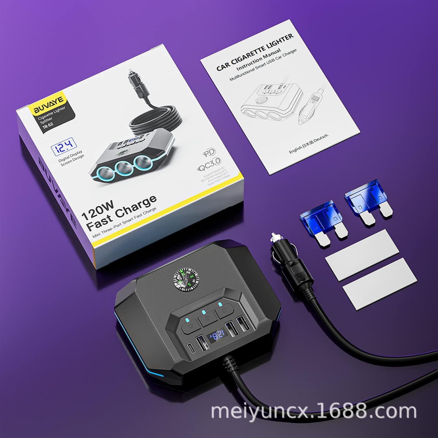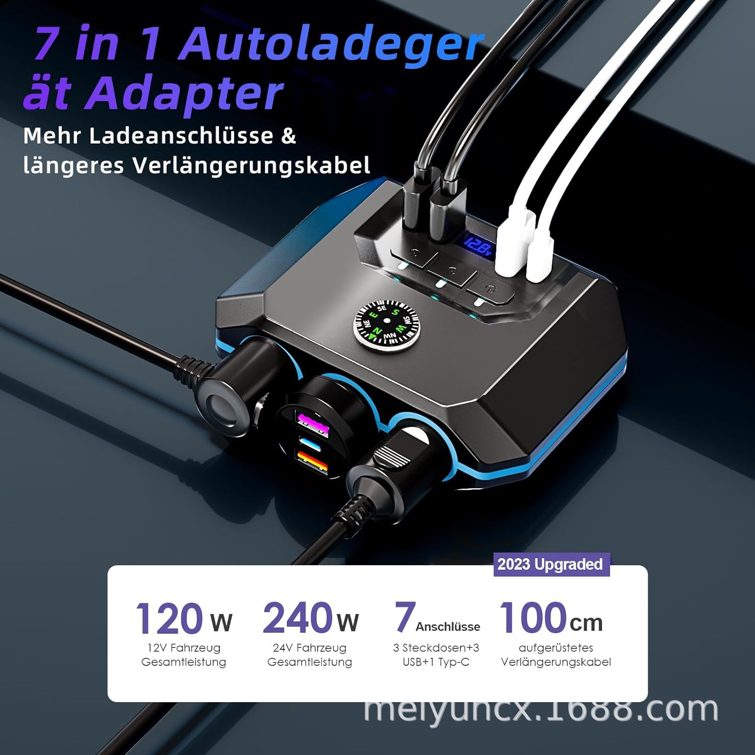 Новое автомобильное зарядное устройство мощностью 120 Вт с разъемом USB+Type-C и тремя портами для подключения одного к трем прикуривателям, многофункциональное зарядное устройство для мобильного телефона 1:7