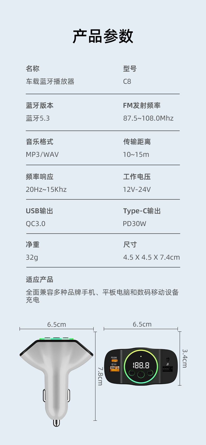包装尺寸:7.9*3.8*12.4cm