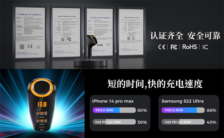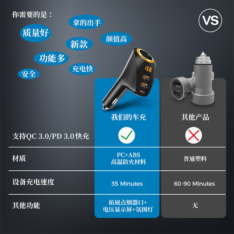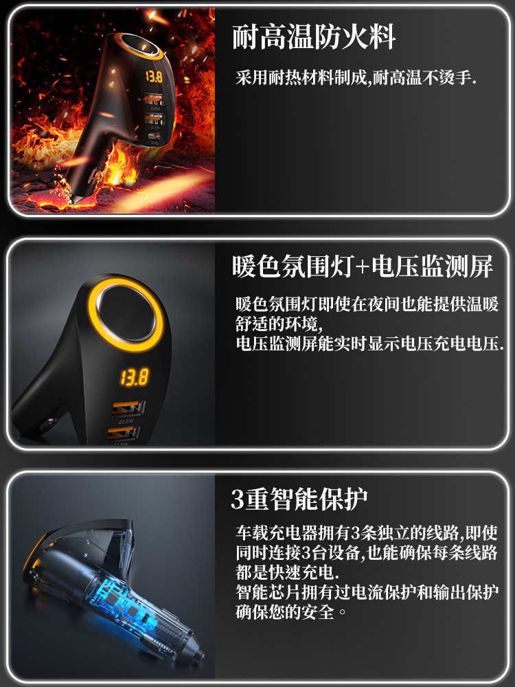 ДомМагазинАвтомобильное зарядное устройствоНовое трансграничное автомобильное зарядное устройство QC3.0 с быстрой зарядкой + автомобильное зарядное устройство PD мощностью 75 Вт с подключением от одного до трех прикуривателей