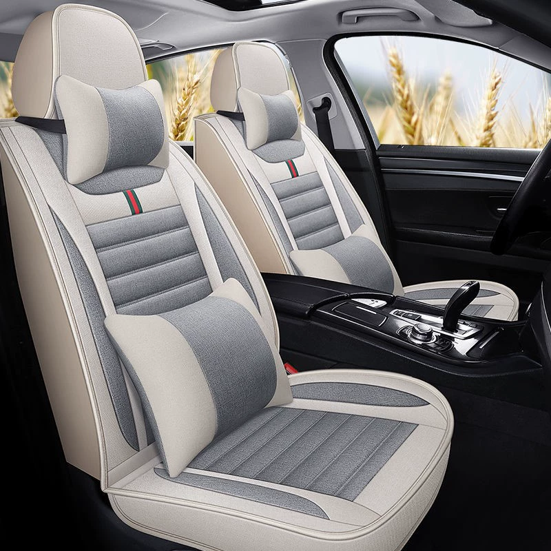 ДомМагазинЧехлы для автомобильных сиденийНовые всесезонные, полностью покрывающие льняные чехлы для пятиместных автомобильных сидений, чехлы и подушки из дышащей ткани.