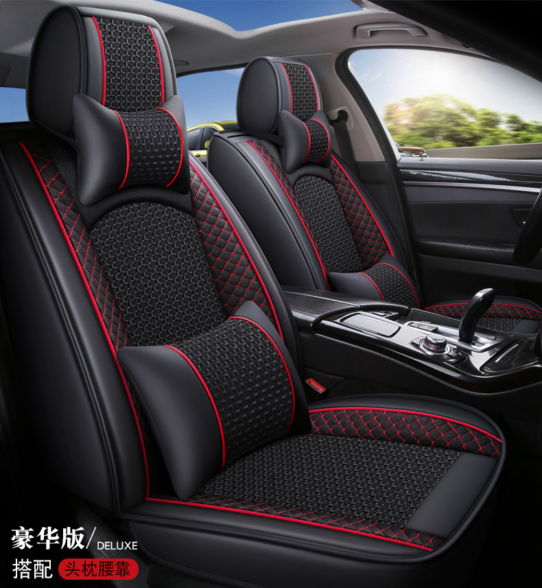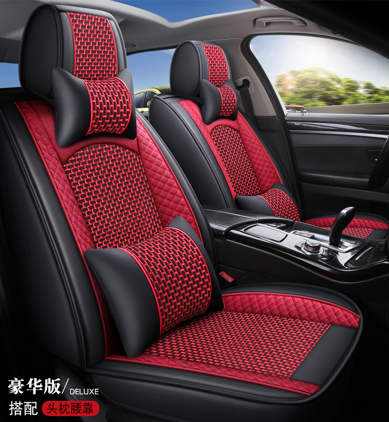 标准版和豪华版的区别:一套五座座垫,豪华版带2个头枕和2个靠枕,标准版不带头枕靠枕,其他一样的!