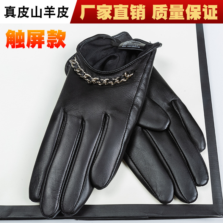 ДомМагазинПерчатки противорежущиеНовые стильные перчатки на осень и зиму, женские, короткие, с сенсорным экраном, тонкие, с цепочкой, цельные перчатки из овчины