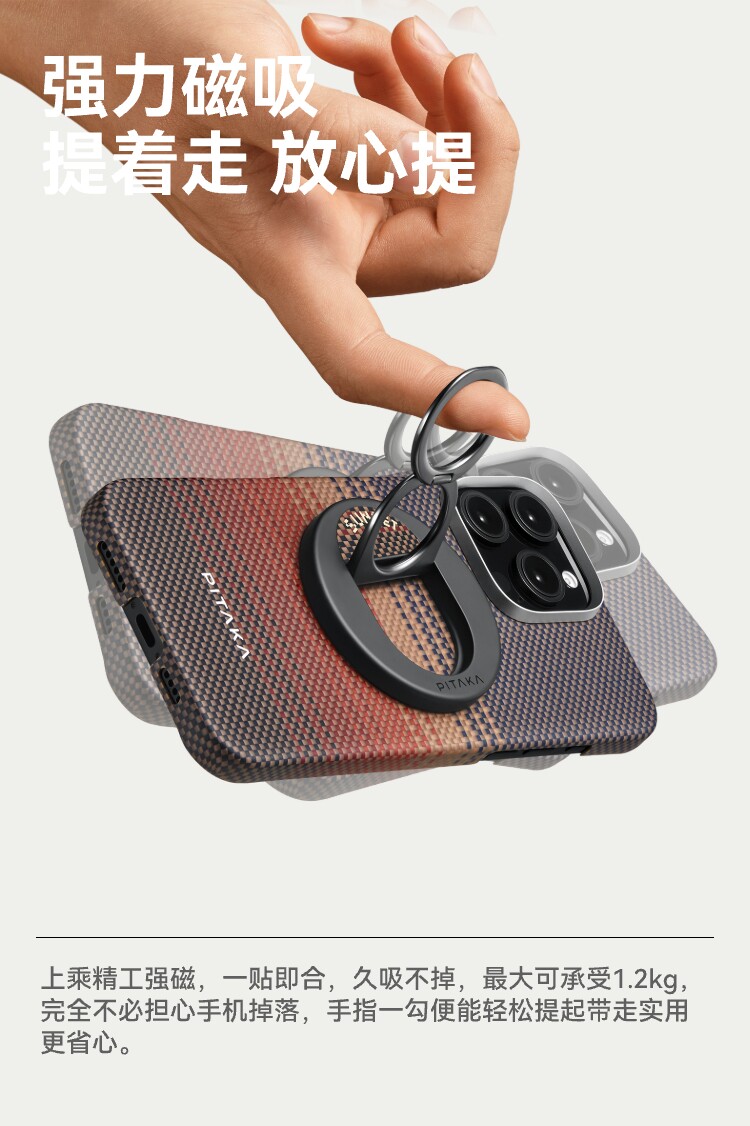 Новый магнитный держатель для телефона от PITAKA с пряжкой из кевларового кольца, портативная многофункциональная подставка Magsafe, тонкое и легкое арамидное волокно, возможность регулировки для портретной и альбомной ориентации, высококачественная магнитная катушка.