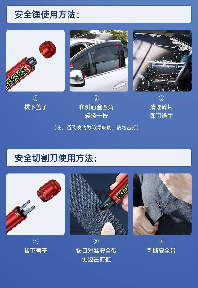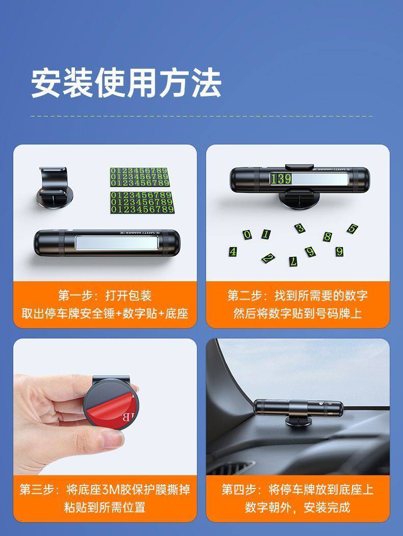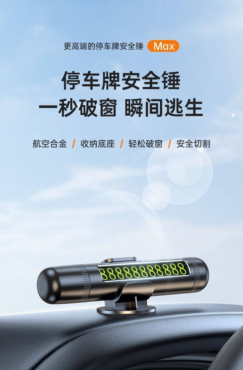 [Премиум-чёрный] Улучшенный парковочный знак «3 в 1» с молотком безопасности, молоток безопасности «2 в 1»