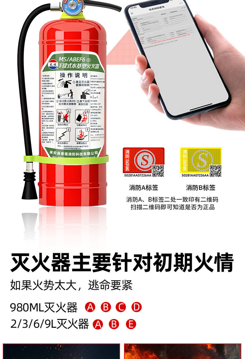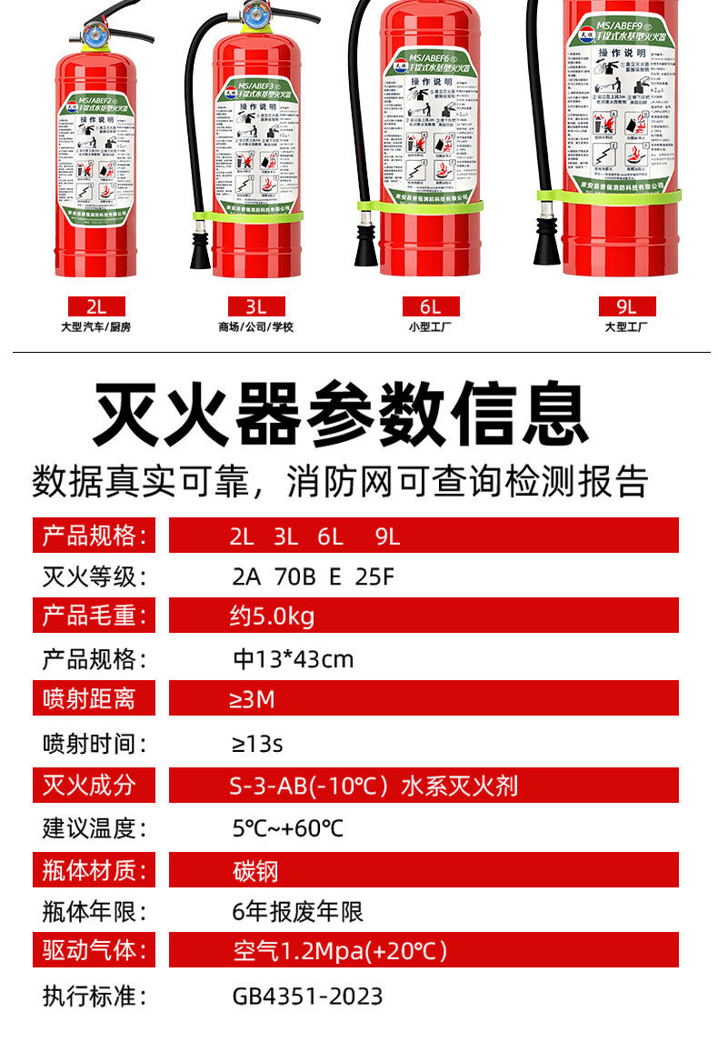 ДомМагазинОгнетушитель для транспортных средствНовый огнетушитель на водной основе национального стандарта, сертифицированный 3C оригинальный продукт, подходящий для использования в домашних условиях, в транспортных средствах и в коммерческих целях, переносной пенный огнетушитель объемом 3/6/9 л.