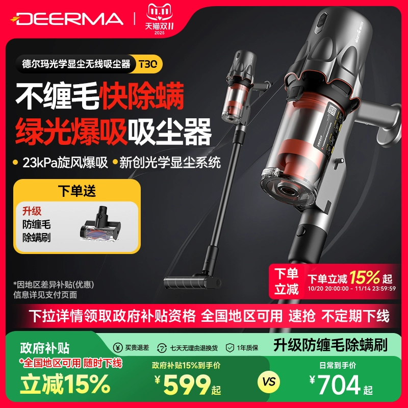 [Общенациональная субсидия в размере 15%] Пылесос Deerma T30 Green Light для домашнего использования, высокая мощность всасывания, беспроводной ручной пылесос для уборки кошачьей шерсти.