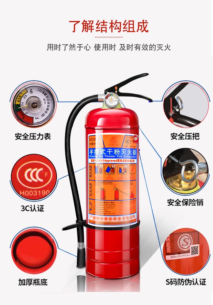 ДомМагазинОгнетушительОгнетушитель бытовой 4 кг сухой порошковый, переносной, для магазинов, заводов и транспортных средств, противопожарное оборудование 1/2/3/5/8 кг.