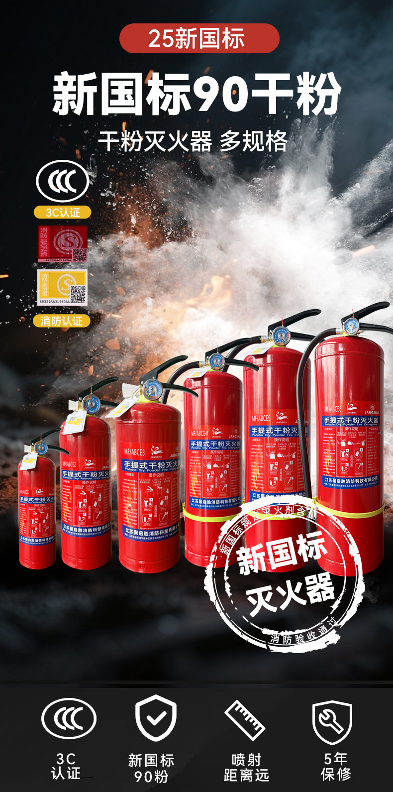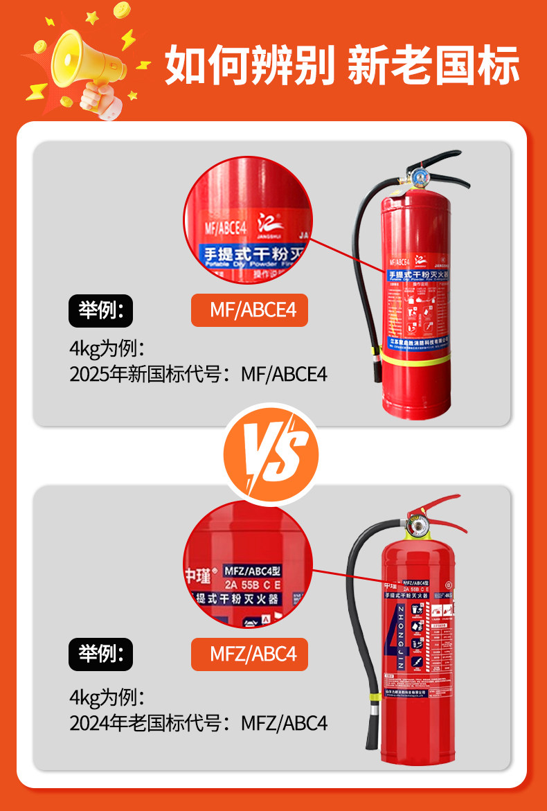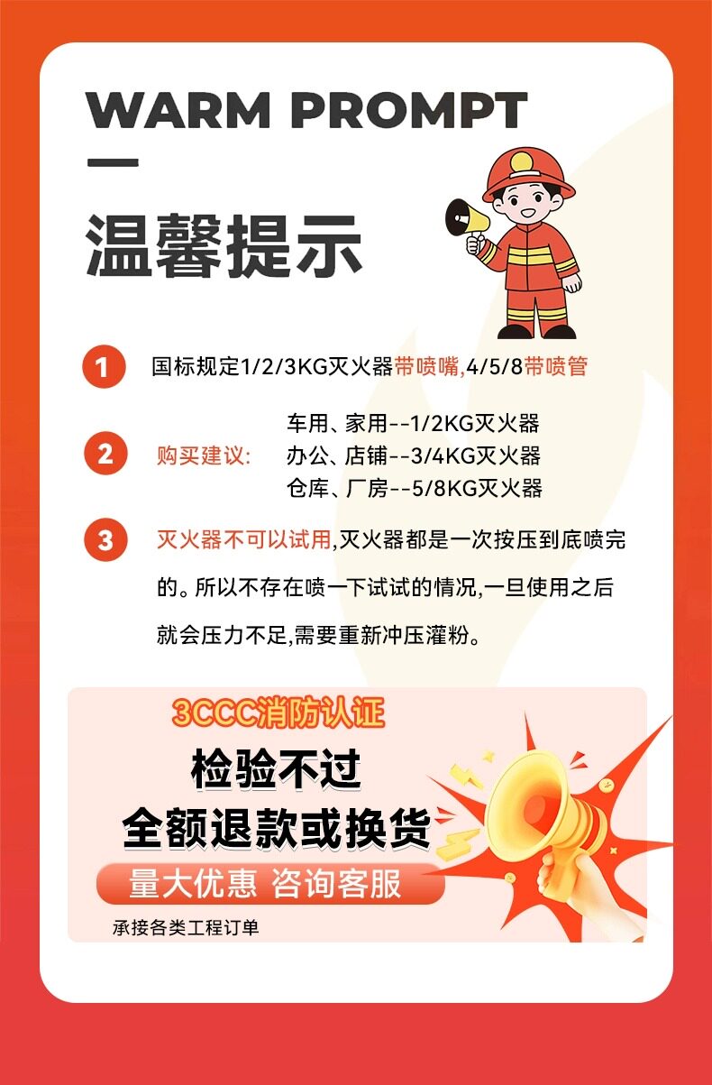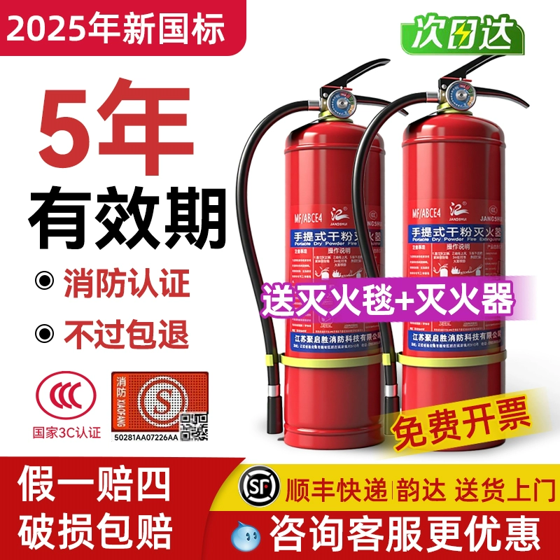 ДомМагазинОгнетушительОгнетушитель порошковый, 4 кг, портативный, малого типа, подходит для использования в магазине, 2/3 кг, для бытового использования, подходит для автомобилей, новая модель 2025 года, национальный стандарт.